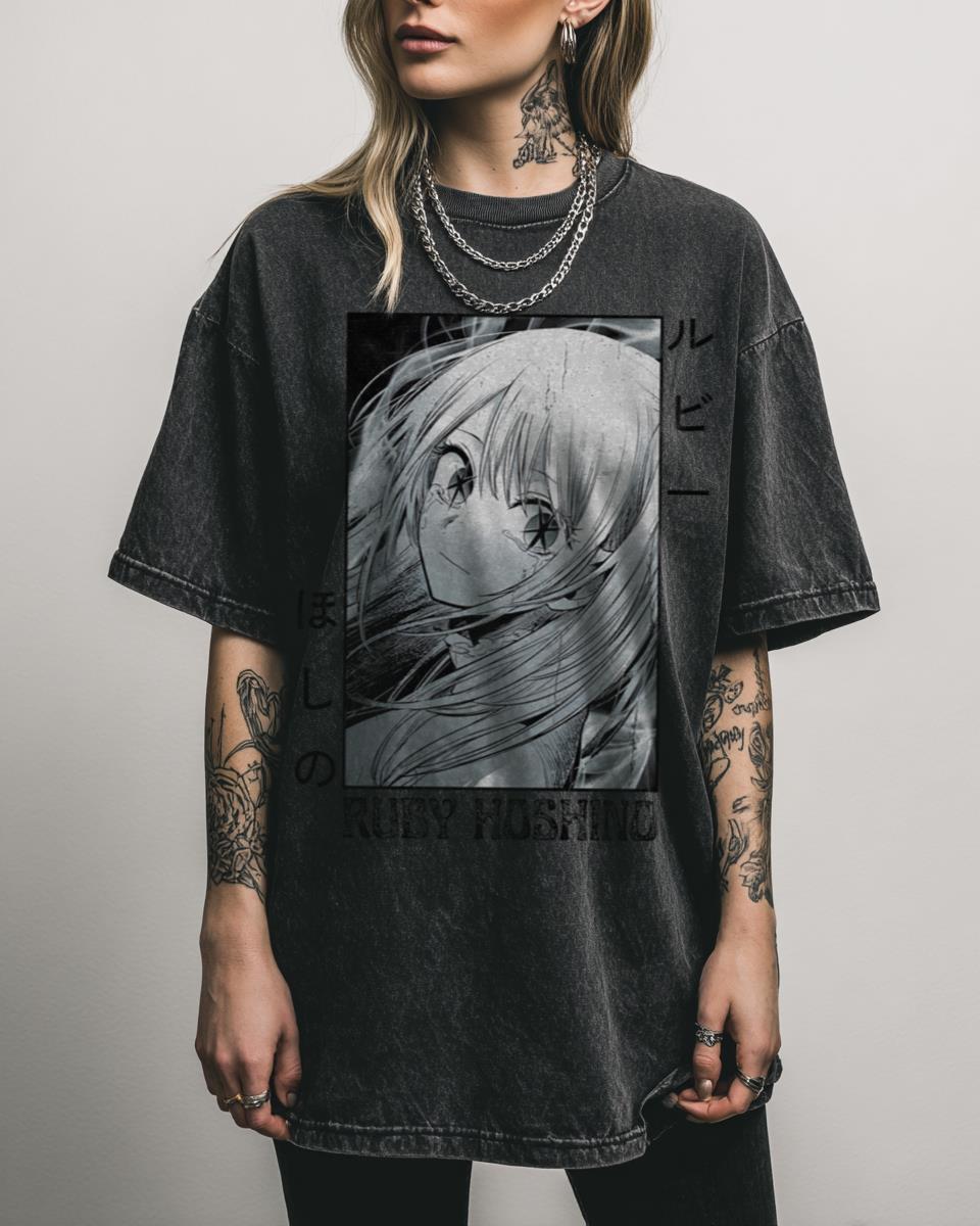 Why This Oshinoko Ai Hoshino Kawaii Tee is So Captivating? Express your devotion to the idol world with this Oshinoko Ai Hoshino Kawaii Anime Graphic Tee. This fan-created design beautifully highlights Ai Hoshino from the popular Oshi No Ko series, capturing her charming and iconic presence. Crafted from 100% cotton with a unique black acidwash…