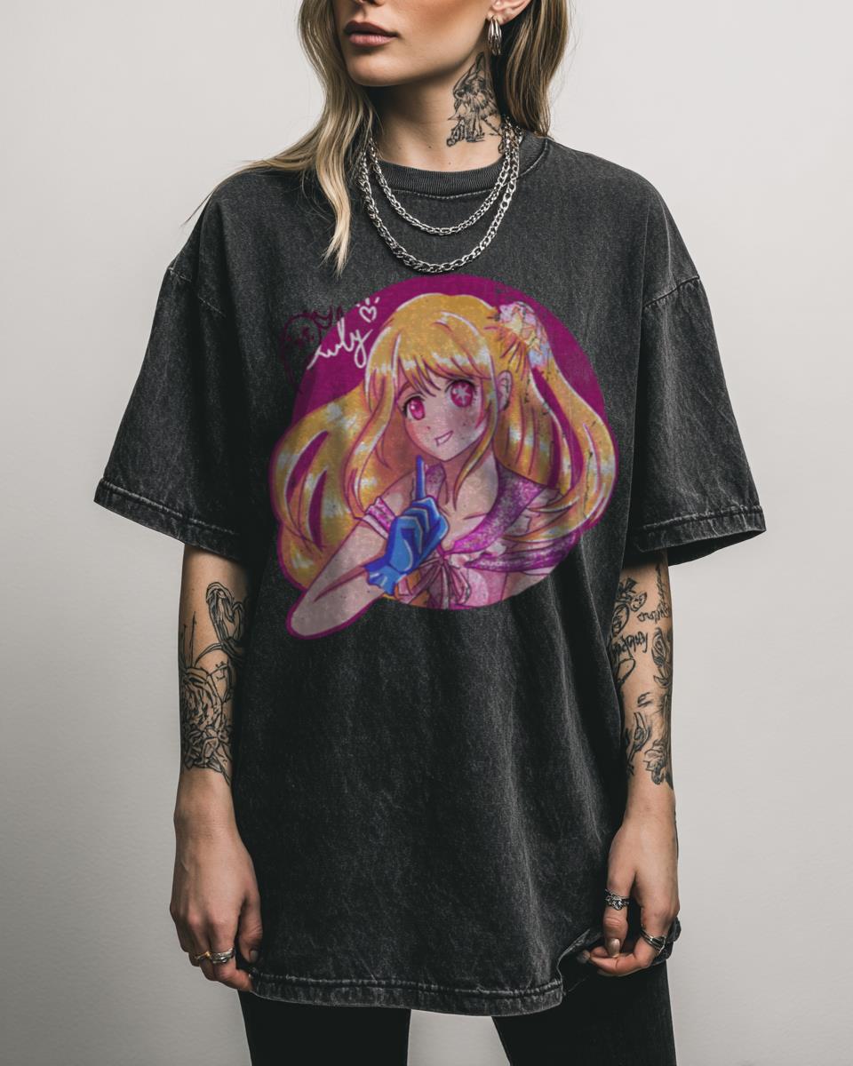 Are you captivated by the Hoshino twins from Oshi No Ko? Celebrate the radiant idol Ruby Hoshino with this ‘Ruby Hoshino Oshi No Ko Fanart (Circle ver)’ graphic tee. This charming design is perfect for anime fans, manga enthusiasts, and admirers of the B-Komachi idol group. Show your love for Ruby and the unique story…