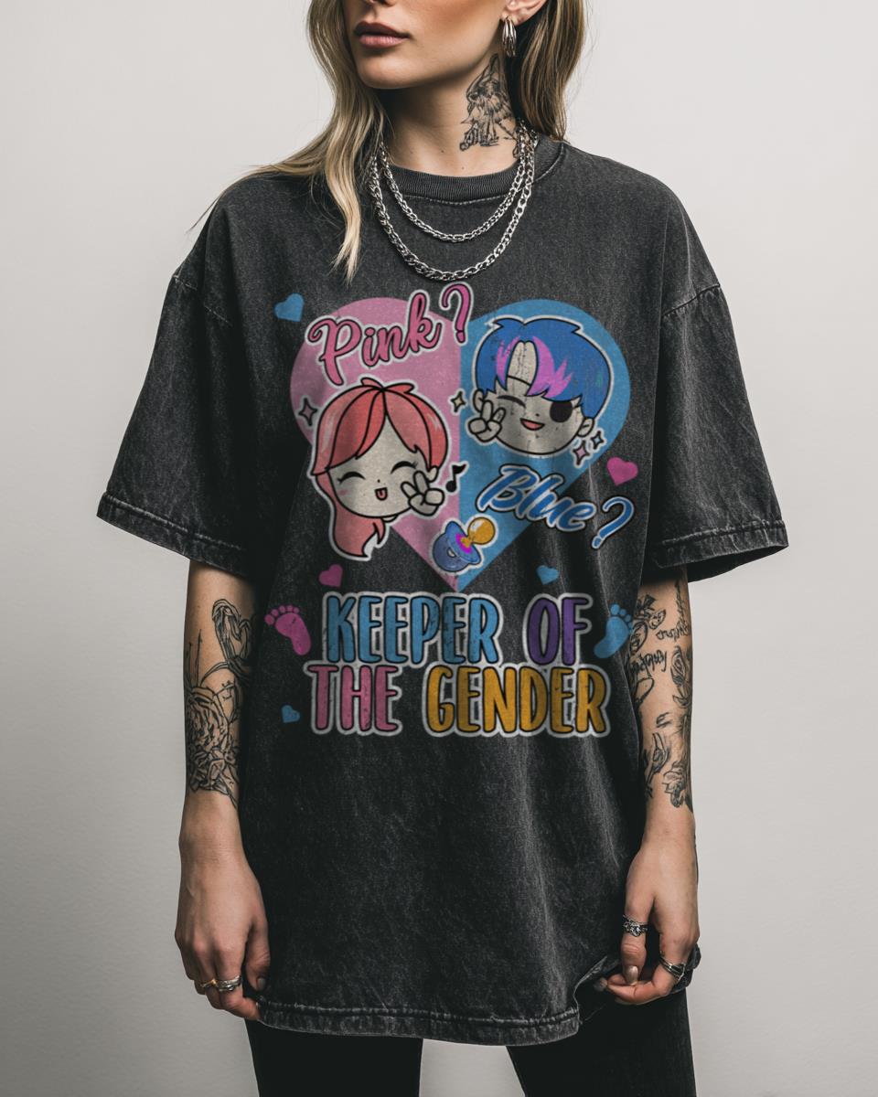 Are you the proud “Keeper of the Gender” for an upcoming baby shower? Make a fun and memorable statement at the gender reveal party with this “Keeper of the Gender Pink or Blue” T-shirt! This design is perfect for aunts, brothers, sisters, or anyone holding the secret of whether it’s a boy or a girl….