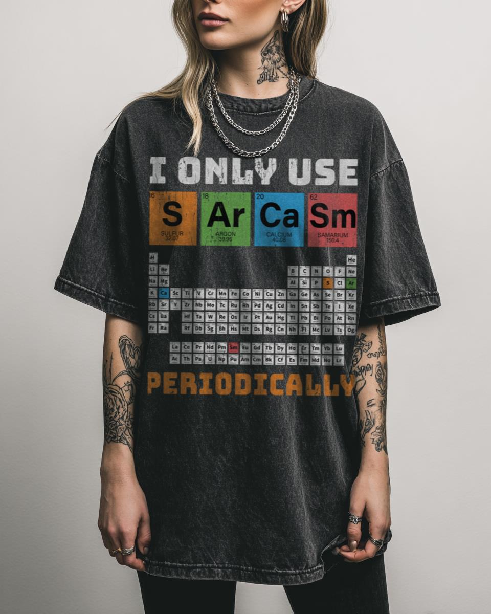 Do you love chemistry, sarcasm, and a good scientific pun? Show off your witty side with this “I Only Use Sarcasm Periodically” T-shirt, cleverly referencing the Periodic Table of Elements. This funny design is perfect for chemistry enthusiasts, science geeks, and anyone who appreciates a smart, sarcastic sense of humor. Why You’ll Love This Science…