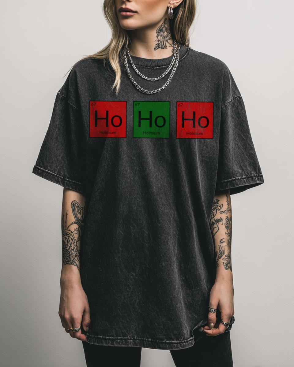 Looking for a Unique Ho Ho Ho Christmas Science T-Shirt? Combine your love for chemistry and holiday cheer with this Ho Ho Ho Christmas Periodic Table T-shirt! Featuring a clever science pun using the element Holmium (Ho, atomic number 67) on a stylish black acidwash tee, it’s the perfect festive graphic tee for any science…
