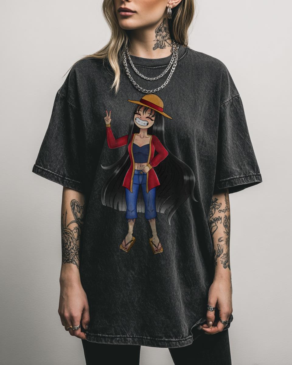 Ever wondered what the Pirate King would look like as a Queen? Imagine a new era of piracy with this captivating “Luffy Girl” T-shirt! This creative fanart design reimagines Monkey D. Luffy as a powerful female pirate, surrounded by elements of the Straw Hat crew. It’s a fun and unique piece for One Piece fans…