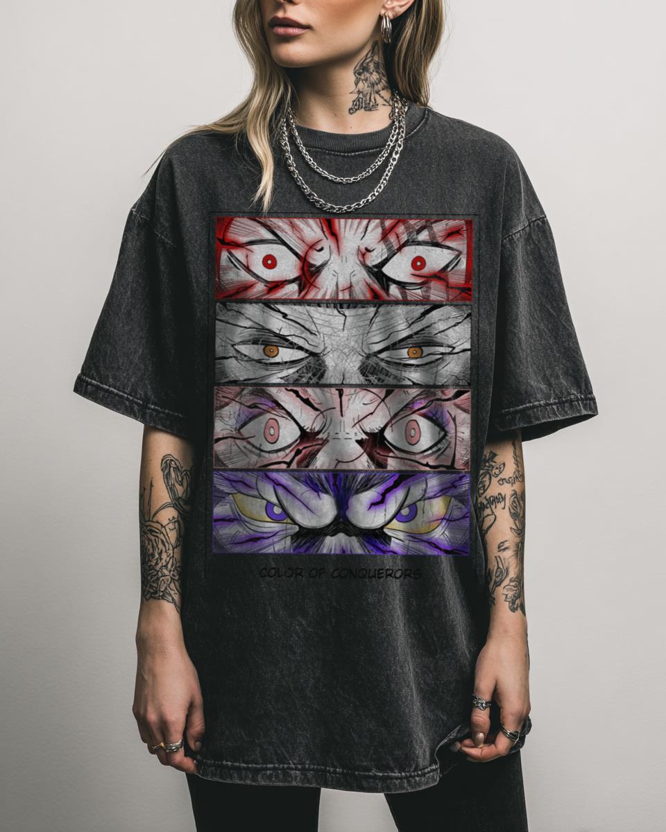 Do you possess the ‘Color of Conquerors’ and admire the legendary Yonko of One Piece? Unleash your willpower with this powerful Black Acidwash T-Shirt, celebrating the ‘Color of Conquerors – Yonko’ from One Piece. This design pays tribute to the legendary pirates like Whitebeard, Big Mom, and Shanks, who wield this rare form of Haki,…