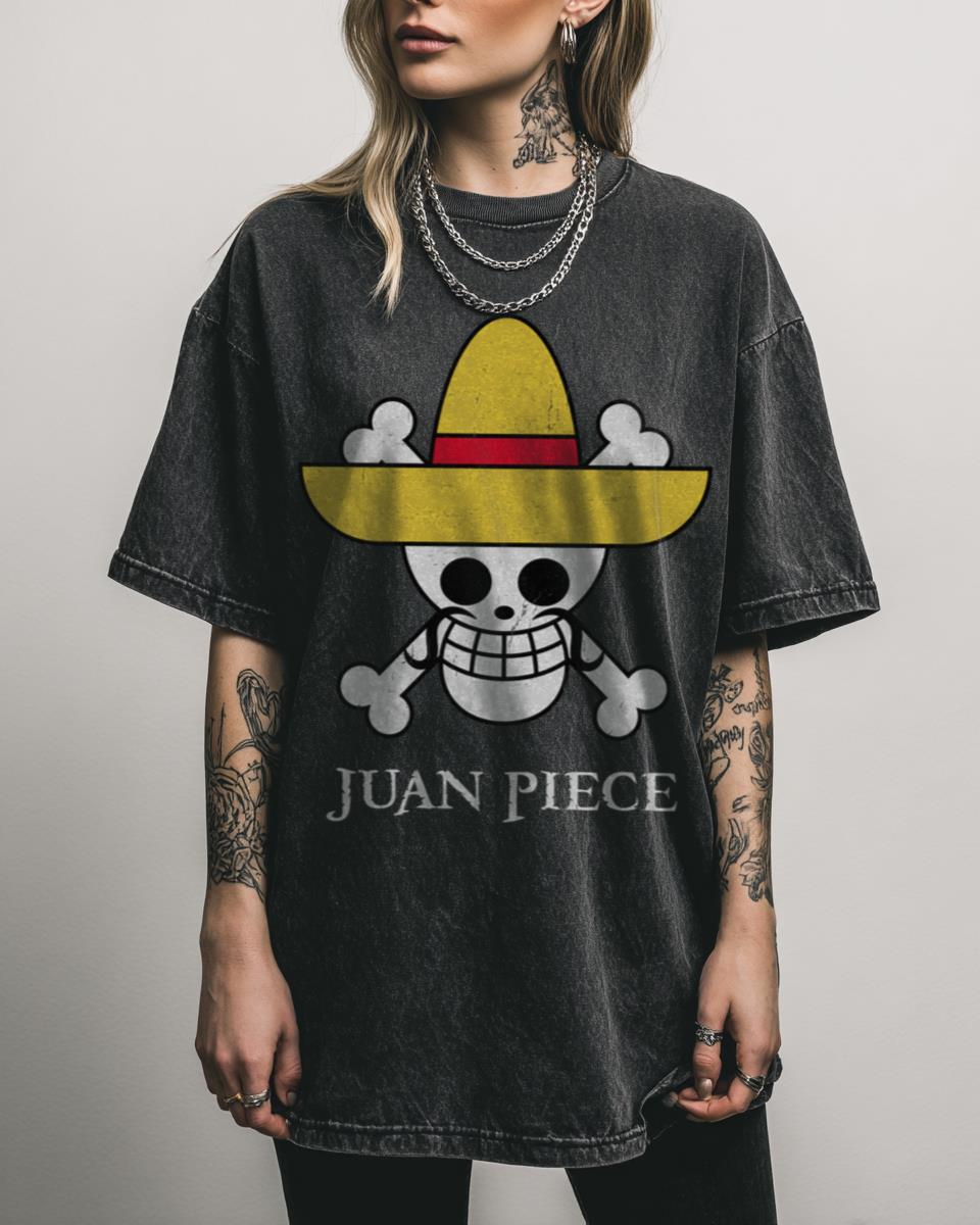 Looking for a hilarious twist on your favorite anime? Set sail for laughter with this ‘Juan Piece – Pirate King’ funny graphic tee! This unique design blends the epic world of One Piece with a humorous Mexican fiesta theme, creating a pun-tastic shirt perfect for fans of anime, manga, and a good laugh. Ideal for…