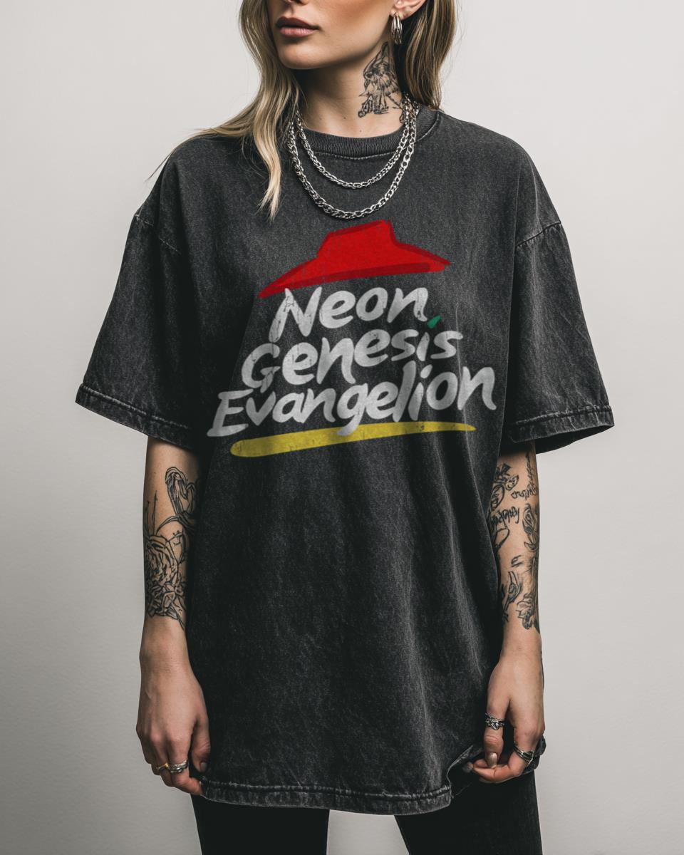 Ever wondered what happens when anime legends meet fast-food icons? Get a slice of pop culture history with this hilarious “Neon Genesis Evangelion x Pizza Hut” crossover design. Featuring beloved characters like Asuka, Kaworu, Rei, and Shinji alongside the classic Pizza Hut logo, this tee is a witty and nostalgic mashup for fans of both…