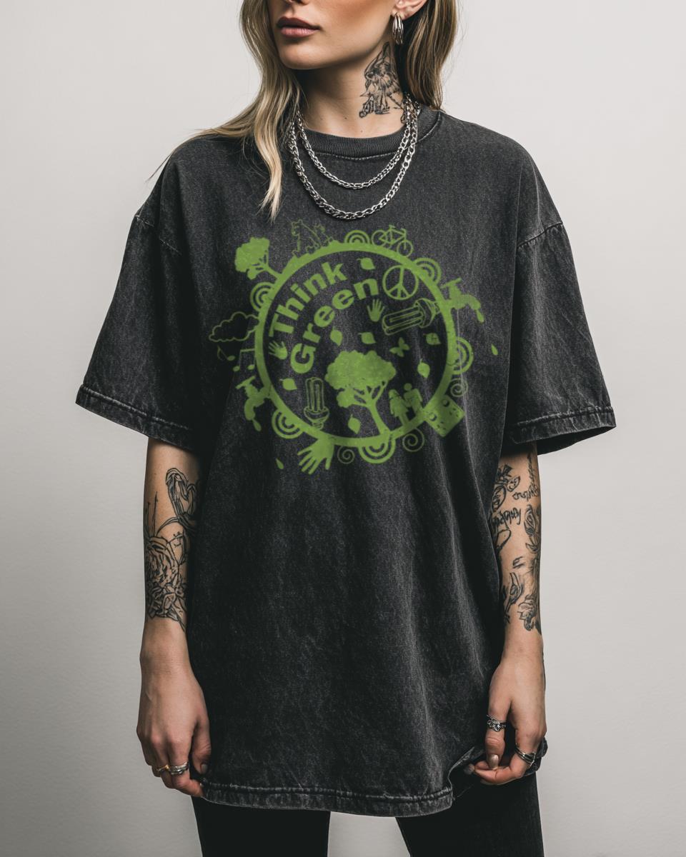 Do you believe in protecting our planet and living an eco-conscious lifestyle? Promote environmental awareness with this inspiring ‘Think Green’ T-shirt! This graphic design beautifully illustrates themes of nature, energy, and peace, featuring elements like leaves, butterflies, light bulbs, and hands. It’s a perfect statement piece for environmentalists, nature lovers, and anyone dedicated to sustainability…