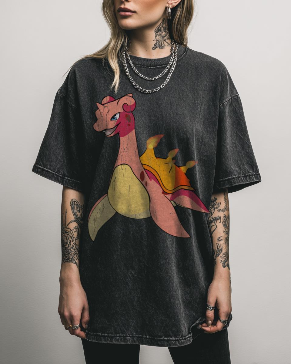 Calling all Pokemon trainers and fusion enthusiasts! Unleash your inner geek with the ‘Charas’ design, a creative fusion of two beloved Pokemon: Charmeleon and Lapras. This unique artwork combines the fiery spirit of Charmeleon with the serene elegance of Lapras, resulting in an imaginative creature perfect for any Nintendo fan. It’s a fantastic conversation starter…