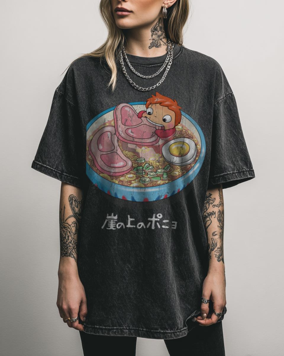 Relive the adorable joy of Ponyo’s favorite treat? This delightful T-shirt features the iconic “HAAAM!” exclamation from Studio Ghibli’s beloved film, Ponyo. With a cute, kawaii aesthetic and pastel vibes, it captures the pure happiness and love for food that makes Ponyo so charming. A perfect gift for Ghibli fans and anyone who loves cute…