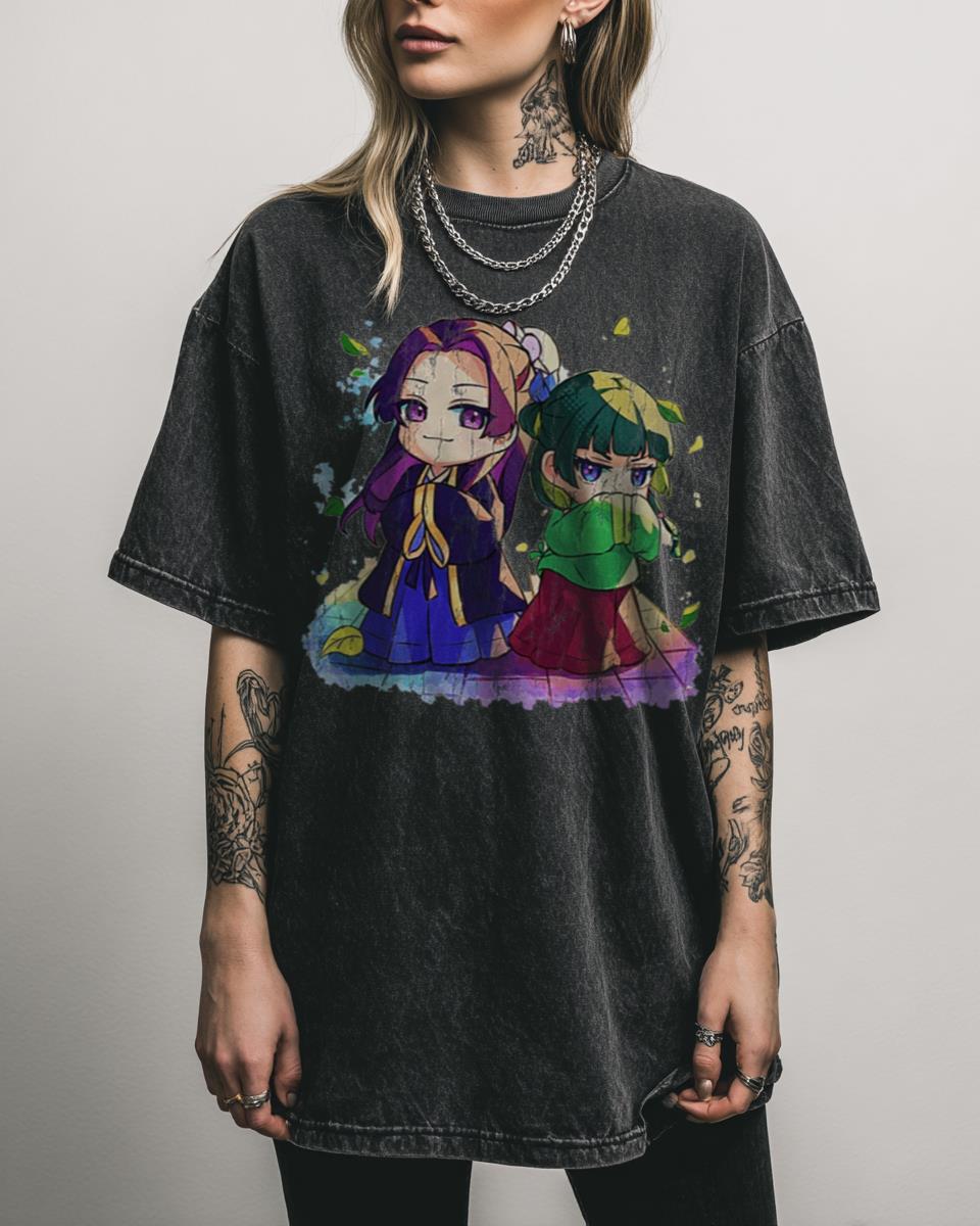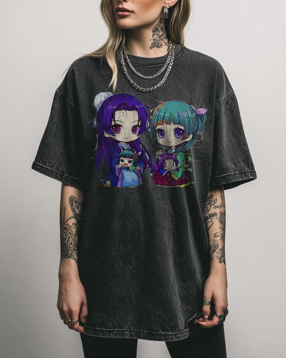Discover This Unique Apothecary Diaries Pop Art T-Shirt! Immerse yourself in the world of The Apothecary Diaries with this vibrant pop art T-shirt, showcasing a stylized design of Maomao and Jinshi. Featuring a trendy black acidwash finish and a comfortable regular fit, this tee is a must-have for any fan of the popular anime and…