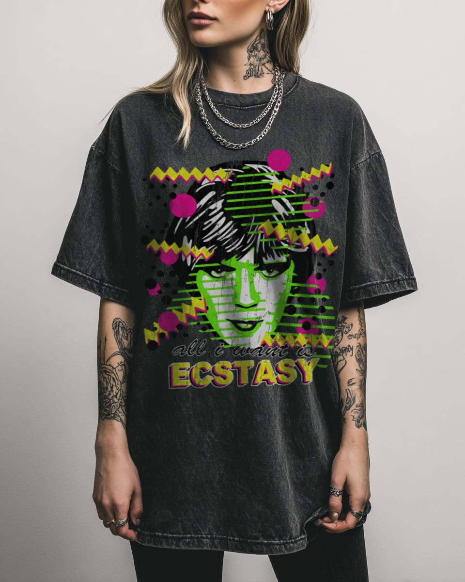 Do you crave the catchy beats and glamorous style of 80s Euro disco? Indulge in the nostalgia with this ‘Fancy wants Ecstasy’ design! This graphic pays tribute to the iconic 80s singer Fancy and the vibrant Italo Disco era. Perfect for fans of Euro Beat, pop music, and retro graphic design.
