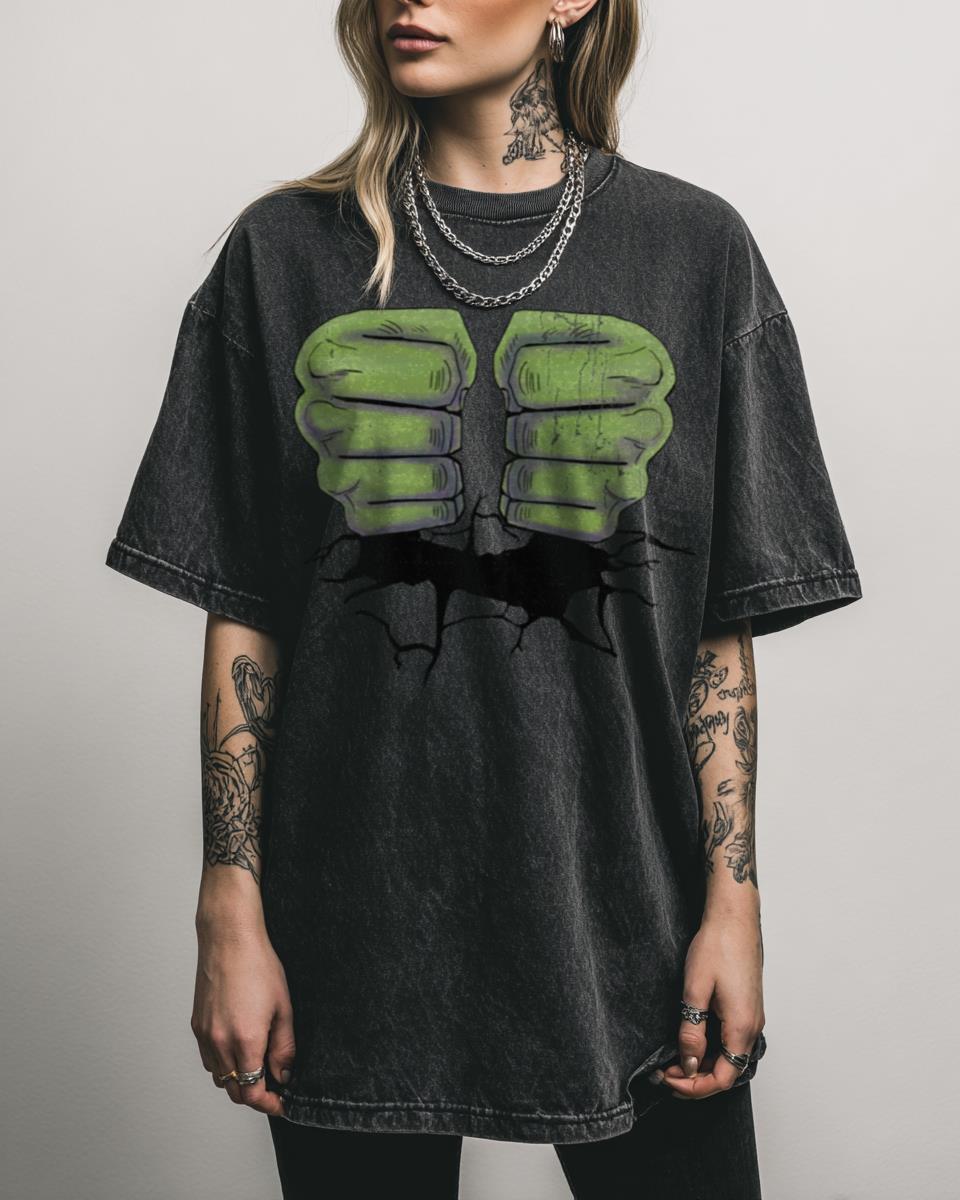 Unleash your inner gamma-powered hero with this smashing tee? This dynamic T-shirt features a powerful “Green Fist Smash” graphic, directly inspired by the Incredible Hulk and his iconic strength from Marvel Comics and the Avengers. It’s a bold statement piece for any superhero fan, celebrating the raw power and unstoppable force of the green goliath….