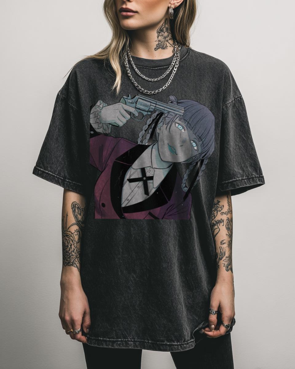 Are you captivated by the intense world of Kakegurui and its enigmatic student council president? This striking graphic features Kirari Momobami, the formidable character from Kakegurui, depicted with a pistol, embodying her powerful and unpredictable nature. Perfect for fans of psychological thrillers, gambling anime, and strong female characters, this design makes a bold statement. Why…