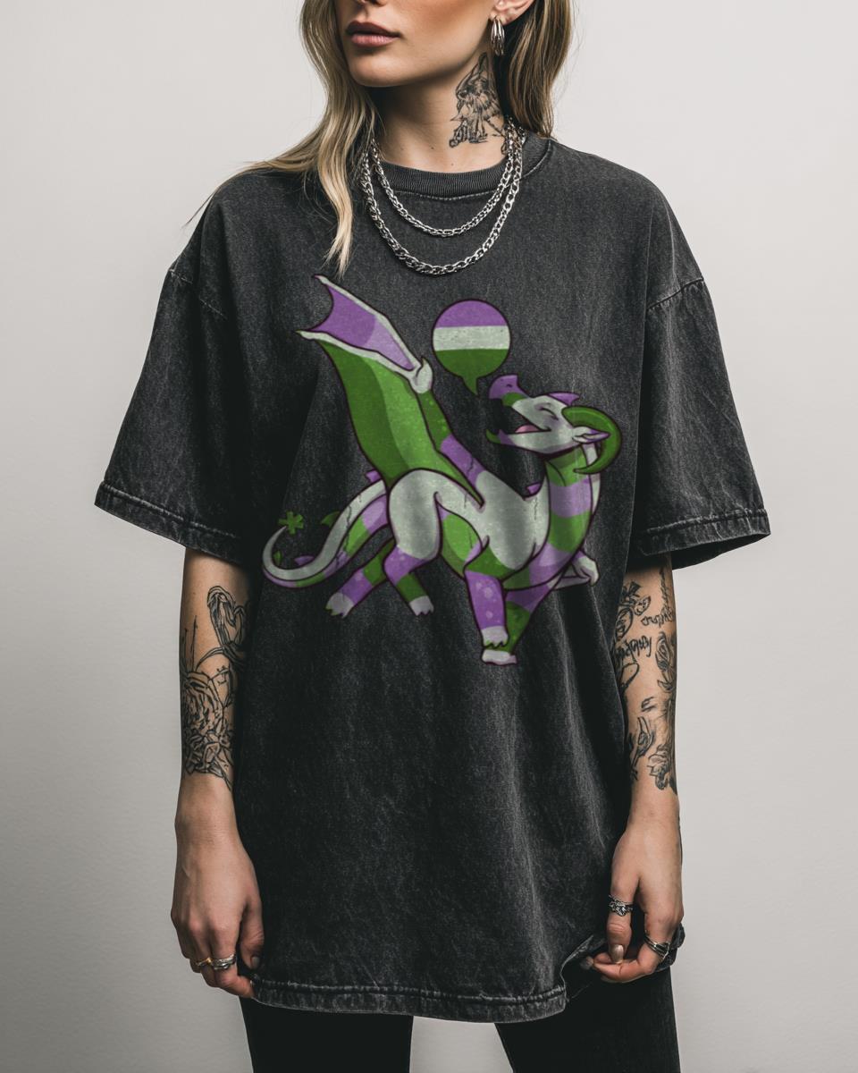 Looking for a unique way to display your genderqueer pride? Soar with pride with our “Genderqueer Pride Flag Dragon” graphic tee! This captivating design features a majestic dragon infused with the colors of the genderqueer pride flag (gray, green, purple, white), beautifully symbolizing nonbinary identity and strength. It’s an empowering and artistic statement piece for…