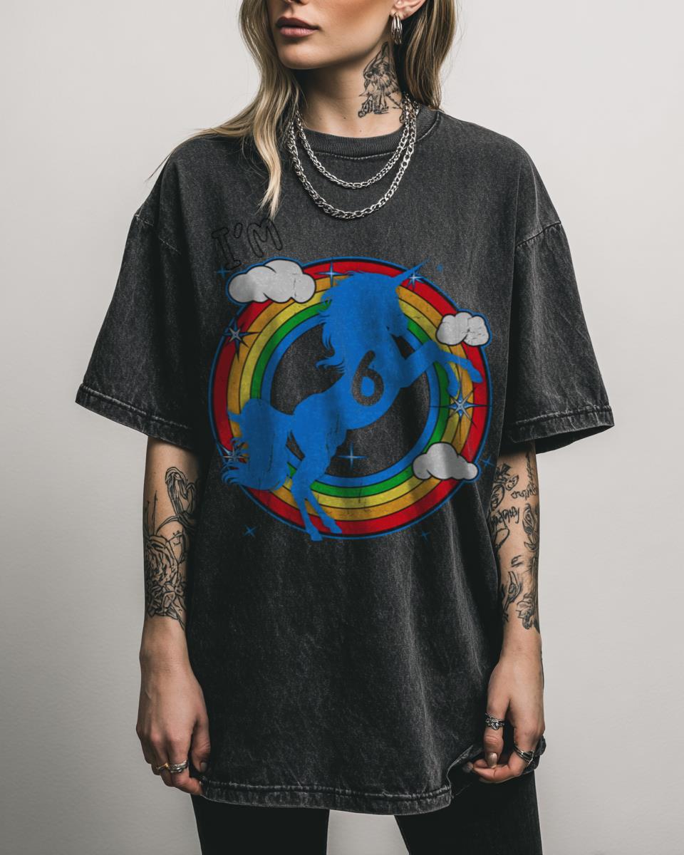 Is your little one celebrating a magical sixth birthday? Make her sixth birthday truly special with this enchanting ‘Unicorn Birthday’ graphic t-shirt! Featuring a charming blue unicorn, vibrant rainbows, and the joyful declaration ‘I’m 6’ (or ‘I’m Magical’), this design is perfect for the birthday girl. It’s a delightful and memorable outfit for her special…