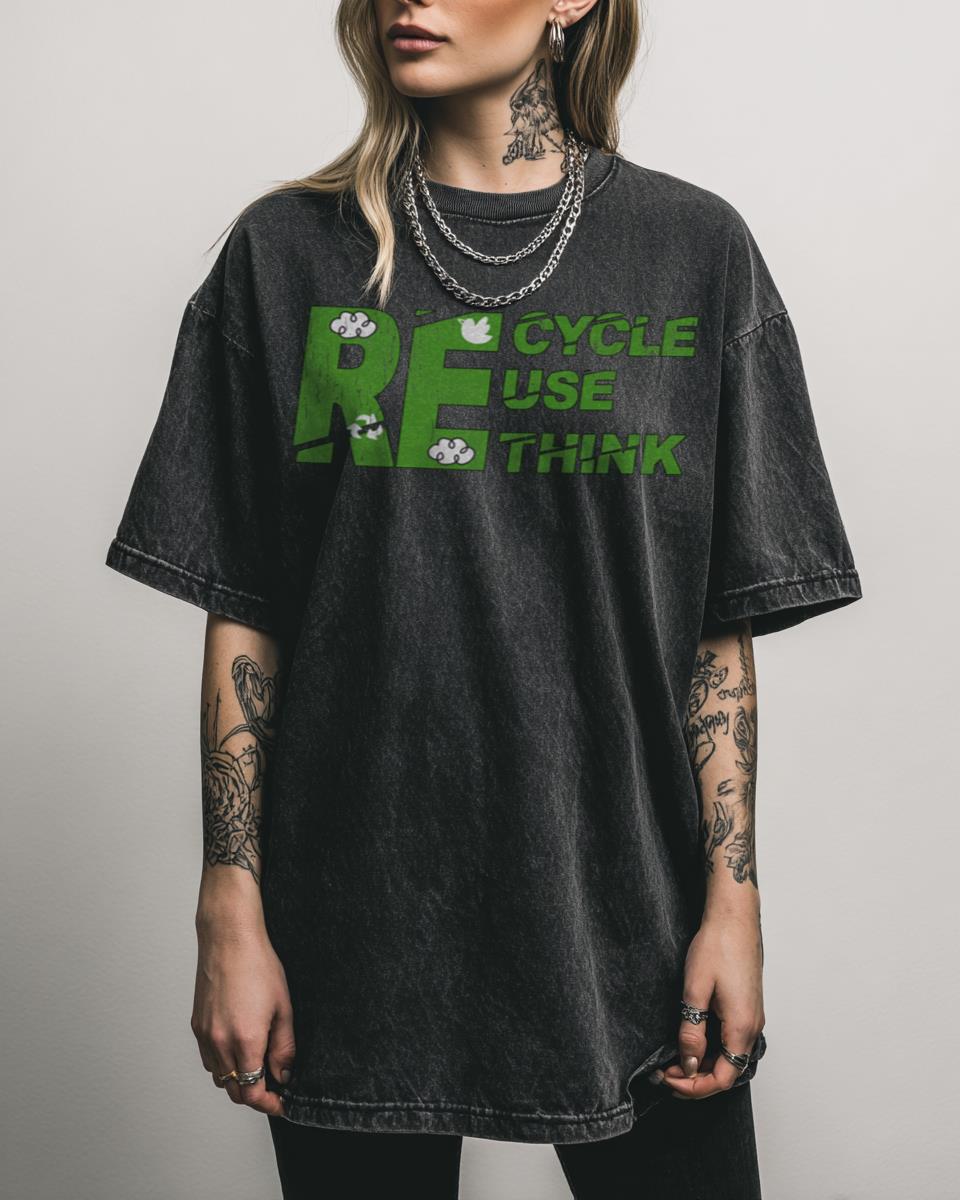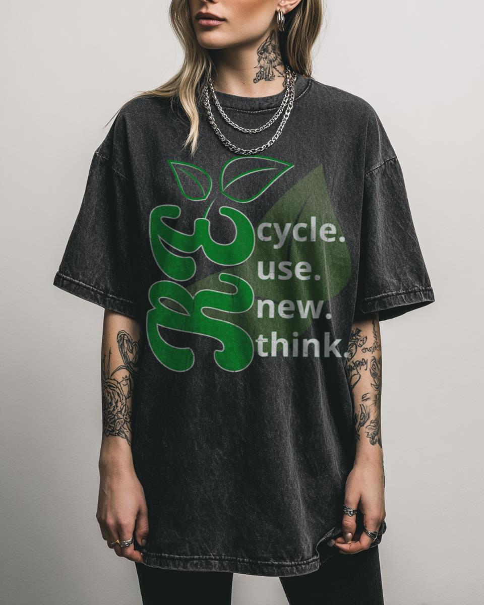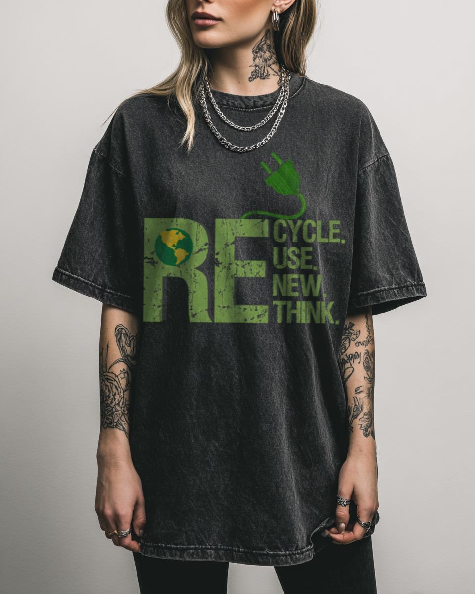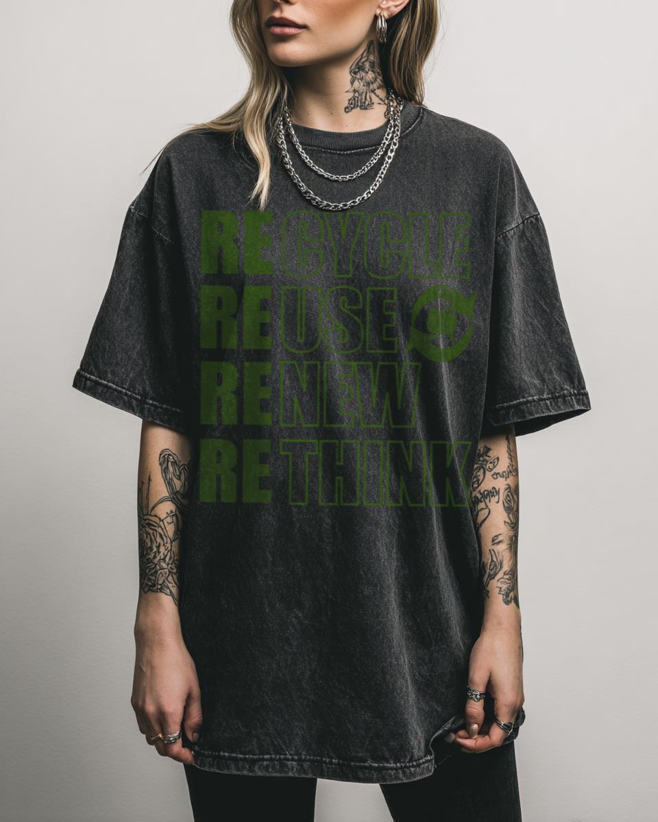 What Message Does This ‘Recycle Reuse Rethink’ Tee Convey for Our Planet? Champion sustainability with this Eco-Friendly ‘Recycle Reuse Renew Rethink’ T-Shirt, featuring a vital message for environmental stewardship. This acidwash graphic tee is a powerful piece of activism apparel, encouraging mindful consumption and a renewed commitment to our planet’s well-being. Why This Environmental Message…