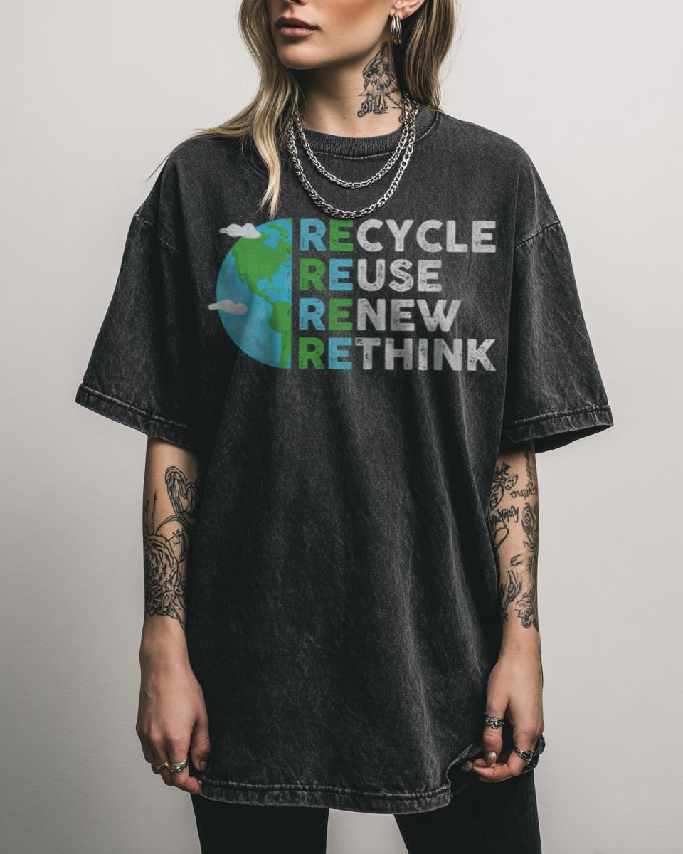 Why is This ‘Recycle Reuse Renew Rethink’ T-Shirt Key for Earth Day? Make a clear stand for our planet with this ‘Recycle Reuse Renew Rethink’ T-Shirt, featuring a powerful environmental message. This acidwash graphic tee is designed for activism, promoting sustainable practices and celebrating Earth Day with a strong call to action for a healthier…