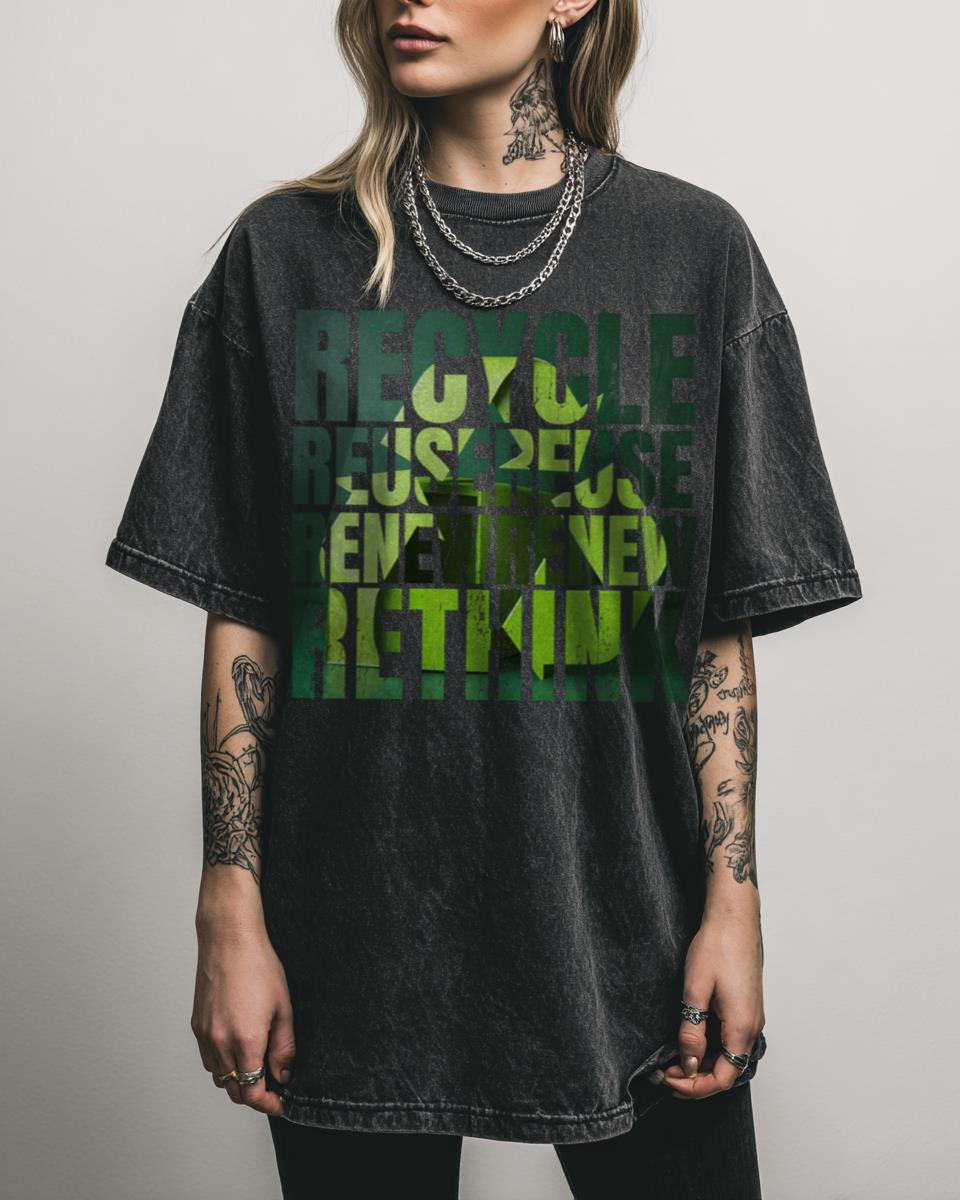 Are you committed to a sustainable lifestyle and protecting our planet? Embrace the core principles of environmentalism with this ‘recycle reuse reduce rethink’ Black Acidwash T-shirt! This design embodies the essential steps for a greener future, advocating for responsible consumption and planetary care. It’s a powerful statement for Earth Day, eco-conscious individuals, and anyone promoting…
