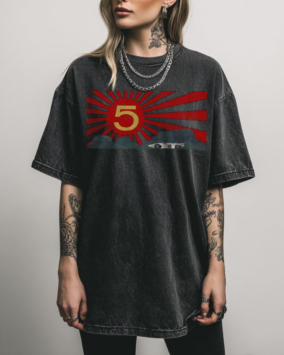 Are you ready to rev your engines and race into action with Speed Racer? Hit the track in style with this “Mach 5 Speed Racer Rising Sun” graphic t-shirt. Featuring the iconic Mach 5 car against a classic Japanese rising sun backdrop, this design pays homage to the legendary anime series. Perfect for fans of…