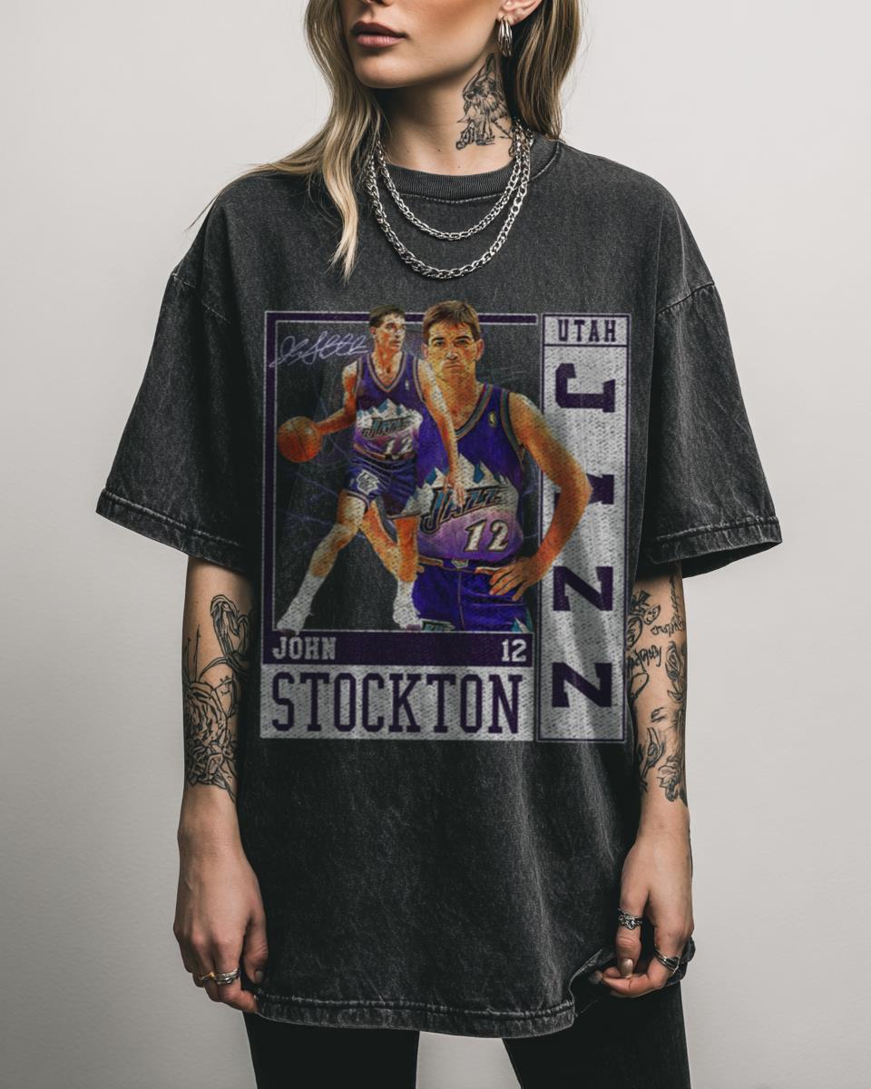 Why This John Stockton Basketball T-Shirt is an 80s 90s Retro Gem? Celebrate an NBA legend with this iconic John Stockton Basketball T-shirt! Featuring a vintage-inspired graphic in a bootleg rap style, this black acidwash tee pays homage to the 80s and 90s era, making it a must-have for Utah Jazz fans, basketball enthusiasts, and…