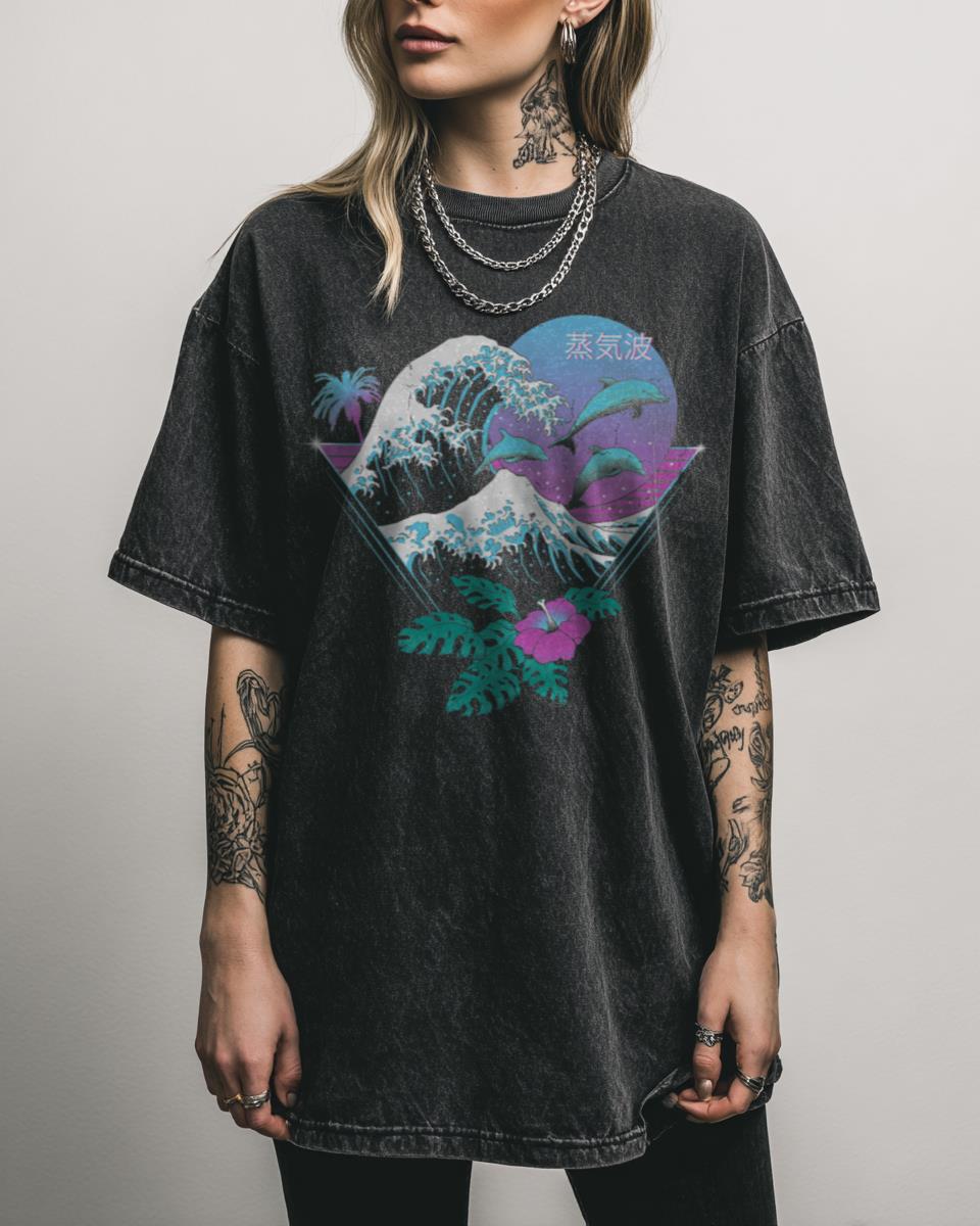 Ready to ride the chillwave with a touch of retro 80s Japanese aesthetic? Dive into nostalgia with this ‘Dolphin Waves’ design, a perfect blend of vaporwave aesthetics and marine life. Featuring a majestic dolphin gracefully swimming through retro-styled waves, this graphic is a cool tribute to 80s and 90s Japanese pop culture, lofi vibes, and…