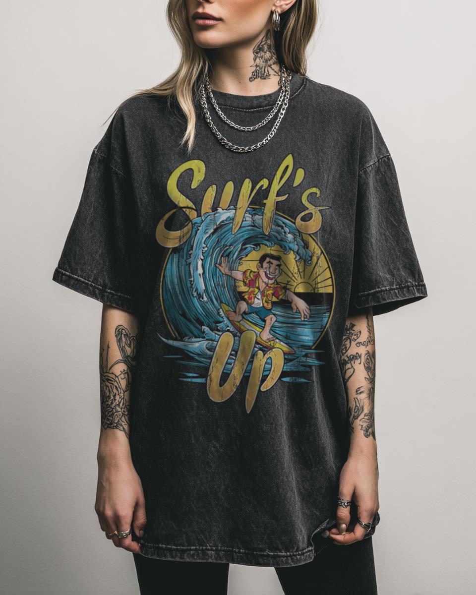 Ready to catch some waves with a side of retro humor? Hang ten with this hilarious “Surf Up” T-shirt, featuring a cool and funny duck ready to hit the beach! This vibrant design blends 80s retro aesthetics with a touch of Japanese anime style, creating a unique piece that’s perfect for those who love vintage…