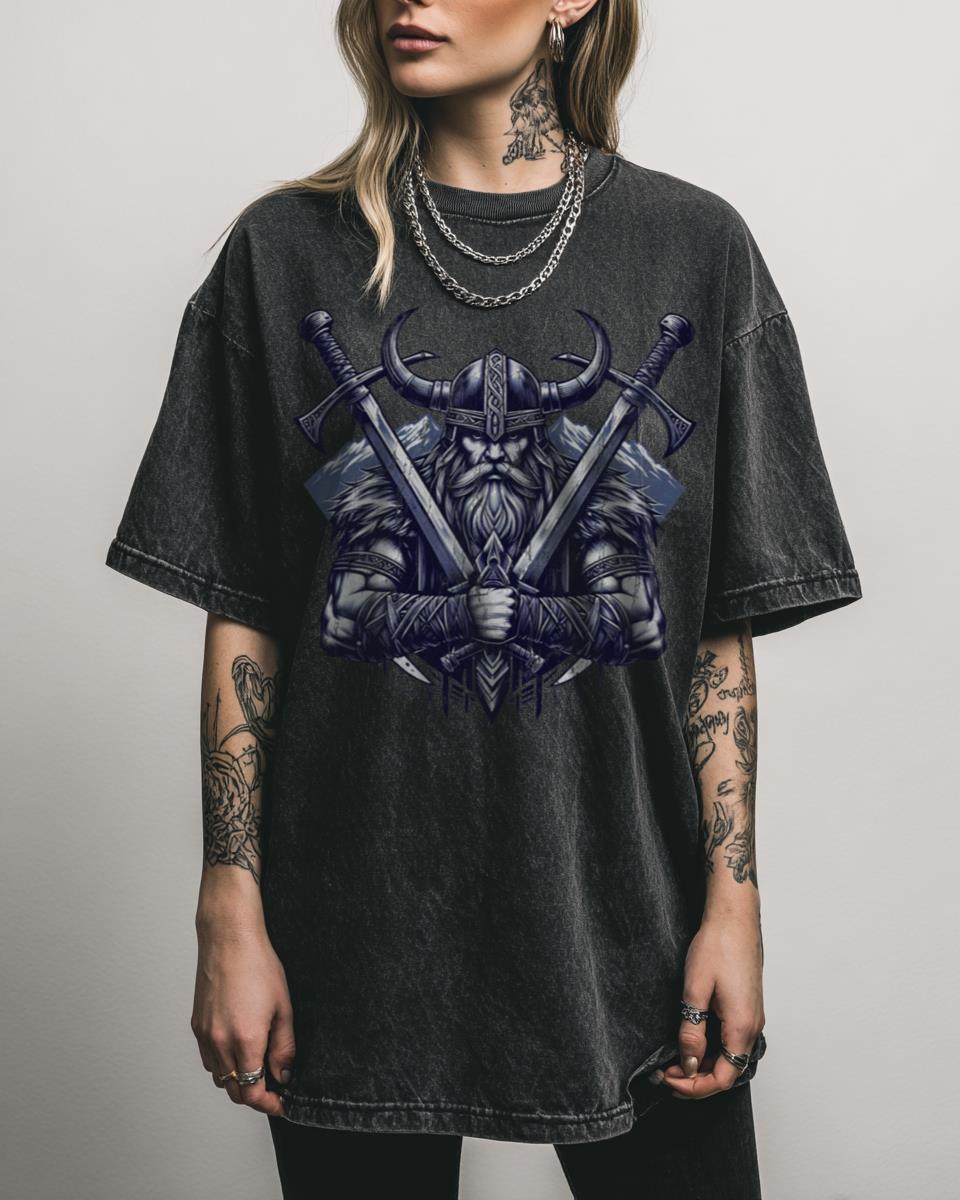 Are you ready to unleash your inner warrior with a powerful Viking design? Embrace the might of the North with our ‘Viking Logo Design with Crossed Swords’ tee! This epic graphic features a fierce Viking logo with crossed swords, set against a mountainous backdrop, evoking the spirit of Nordic warriors and legends. Perfect for fans…