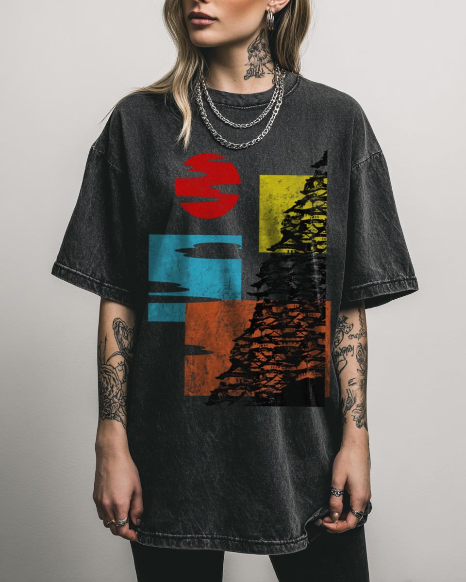 What Defines This 70s 80s Vibe Rainbow Retro Vintage T-Shirt? Step back in time with this “70s 80s Vibe Rainbow Retro Vintage Print” T-shirt, featuring a vibrant, printed graphic that captures the essence of classic disco and synthwave aesthetics. This unique black acidwash tee, with its eye-catching rainbow design, is perfect for anyone seeking a…