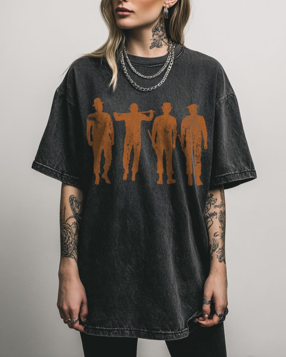 Why This A Clockwork Orange Droogs T-Shirt is a Cult Classic? Step into the dystopian world of Stanley Kubrick with this A Clockwork Orange Droogs T-Shirt. Featuring an iconic graphic inspired by the unsettling 70s cult film, this black acidwash tee is a bold statement for any cinephile or fan of Alex and his droogs….
