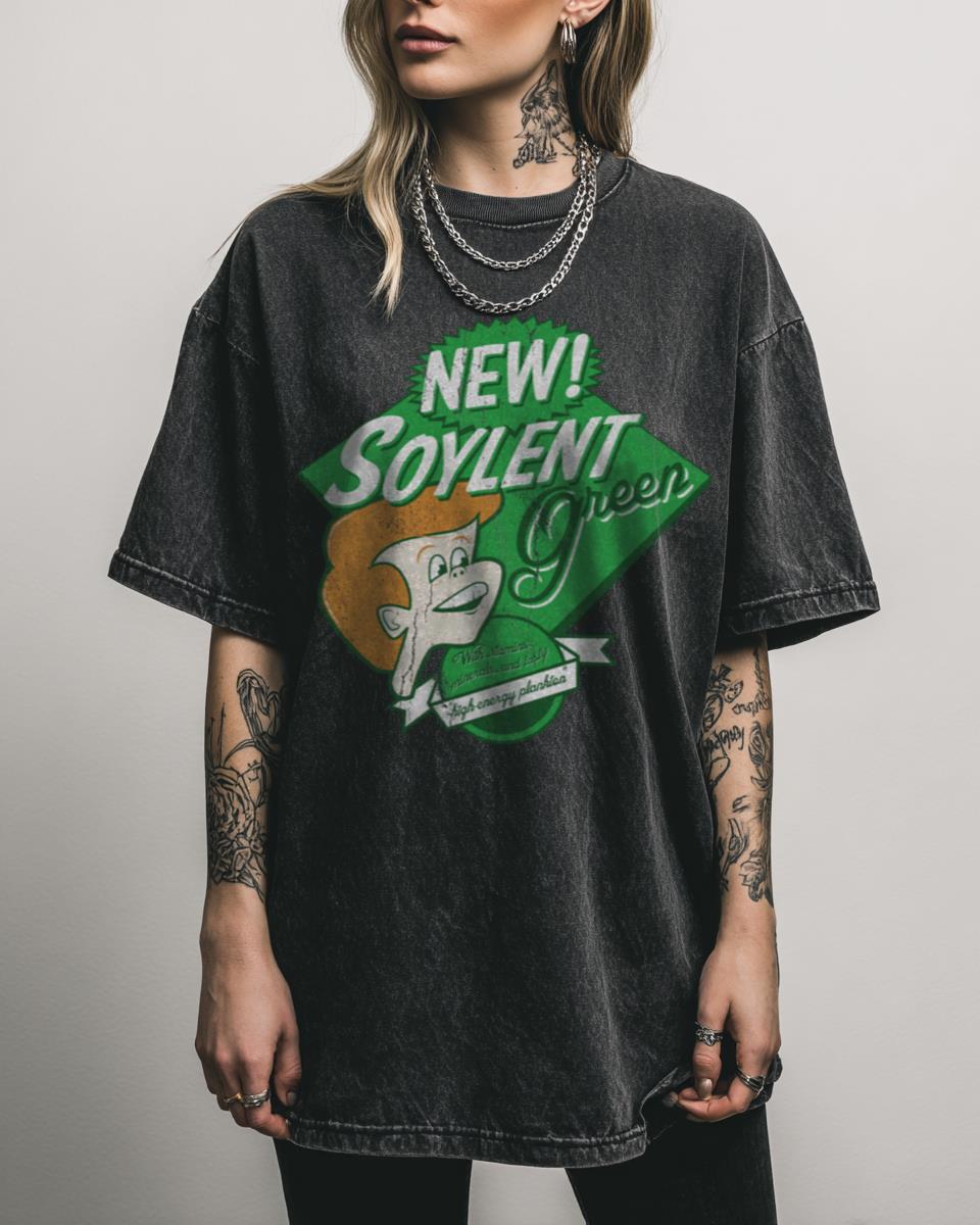 Are you ready to uncover the chilling truth of a classic sci-fi dystopia? Delve into the dystopian future with this classic ‘Soylent Green’ design, a chilling tribute to the iconic science fiction film. This graphic captures the essence of the cult classic, perfect for fans of vintage sci-fi, thought-provoking cinema, and environmental themes. It’s people!…