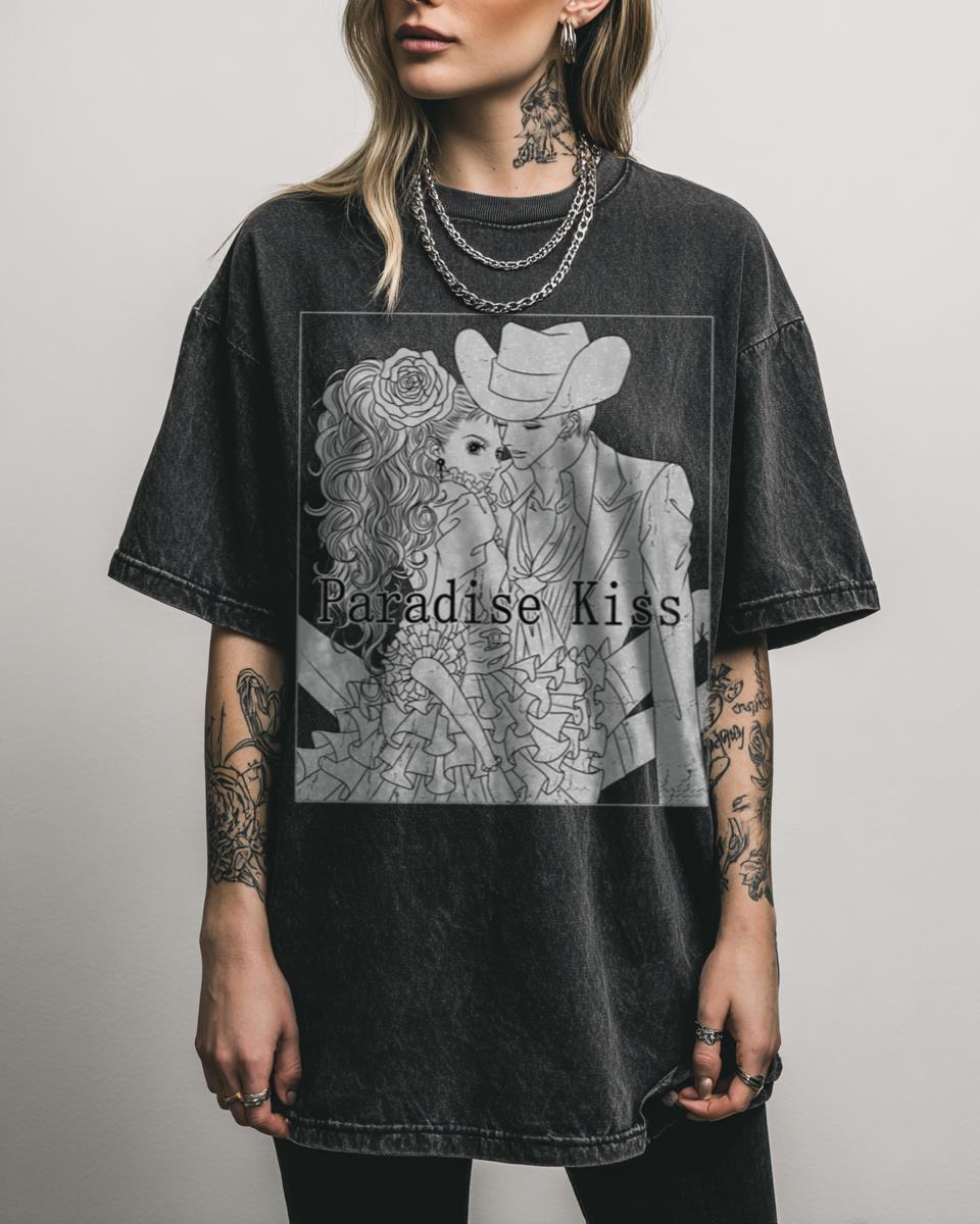 Are you a devotee of Ai Yazawa’s iconic fashion and drama? Step into the glamorous world of fashion and romance with this “PARADISE KISS” T-shirt, a tribute to the beloved manga and anime series by Ai Yazawa. This design embodies the unique blend of 90s punk, Visual Kei, and shojo aesthetics, perfect for fans who…