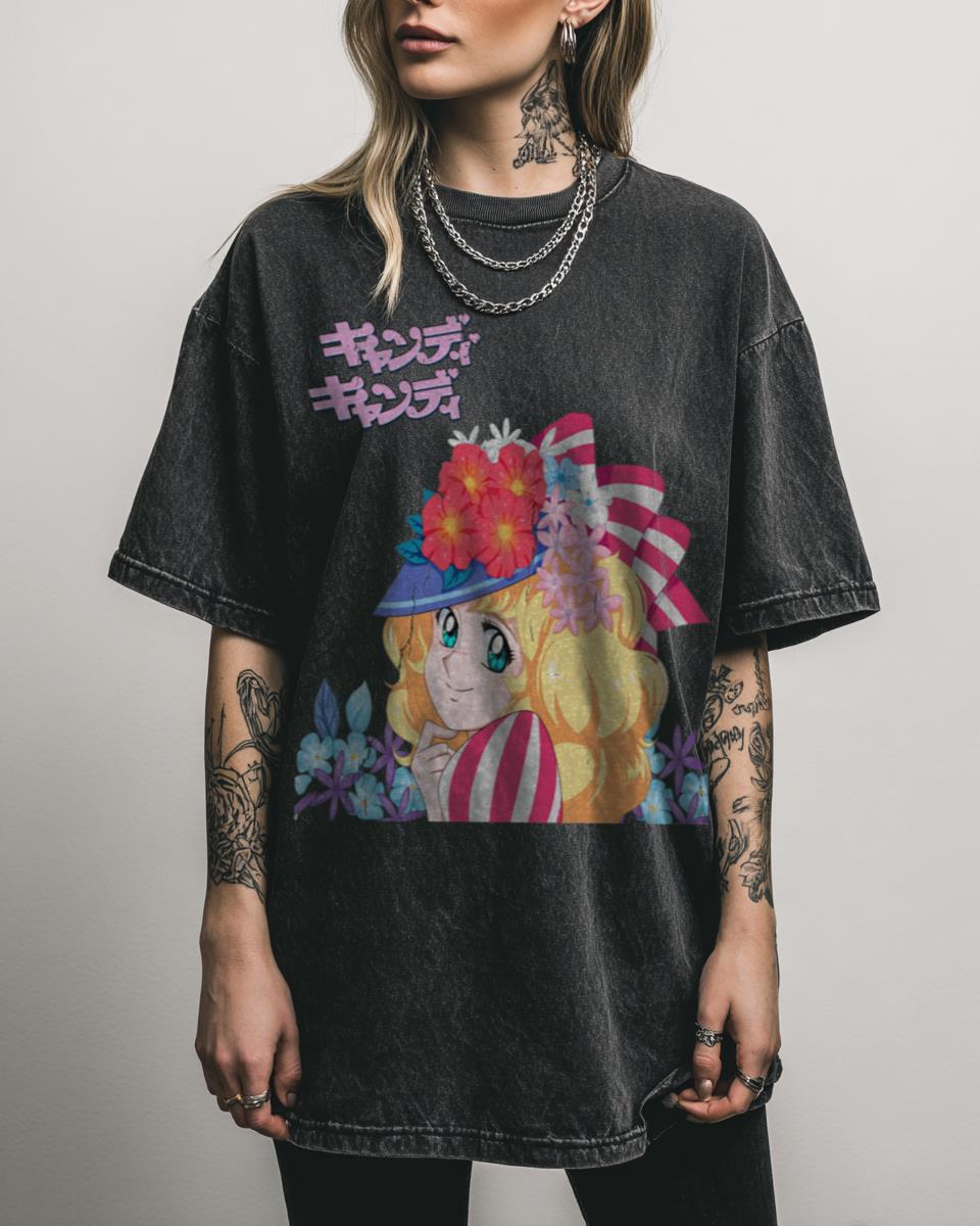 Nostalgic for the sweet charm of classic retro anime? Step back in time with this delightful ‘Candy!’ design, featuring the beloved Candy Candy! This artwork captures the iconic anime girl in a cute, kawaii, and retro style, perfect for fans of classic shojo manga and vintage animation. Printed on a stylish Black Acidwash T-shirt, it’s…