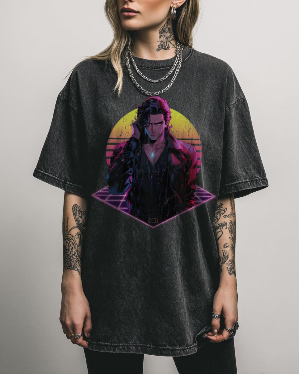 Are you ready to surf the retro wave of 80s anime? Channel your inner 80s enthusiast with this ‘Retro Wave 80s Anime Man’ graphic tee. This design perfectly blends the iconic look of vintage anime with the vibrant aesthetics of new retro wave, making it ideal for fans of classic animation, retro gaming, and synthwave…