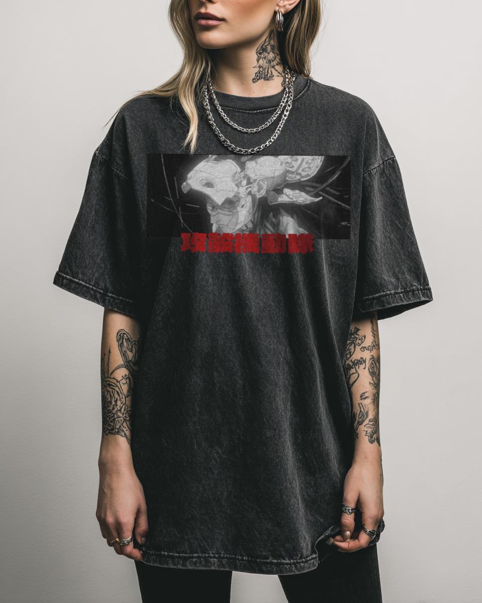 Dive into the dystopian future with this iconic cyberpunk anime apparel! This ‘Ghost in the Shell’ graphic pays tribute to the groundbreaking 1995 Japanese anime film. Featuring elements inspired by Major Motoko Kusanagi and the cyberpunk aesthetic, it’s a must-have for fans of the classic manga and its profound themes. A perfect blend of vintage…