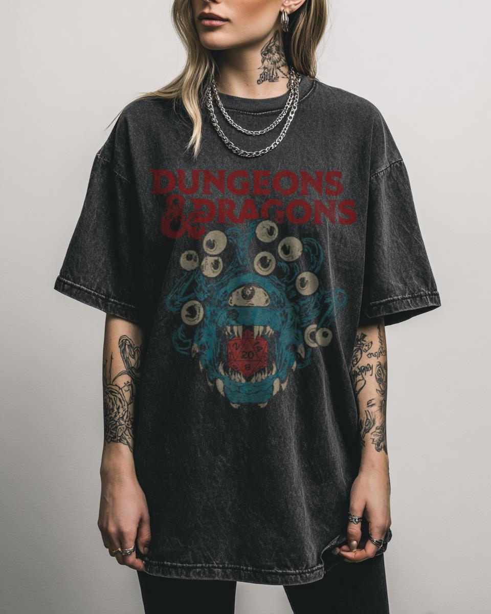 Roll for Style with The Dungeons & Dragons Retro Wave T-Shirt? Level up your wardrobe with The Dungeons & Dragons Retro Wave T-Shirt. Featuring a vibrant D20 graphic infused with an awesome 80s synthwave aesthetic, this black acidwash tee is perfect for Dungeon Masters, Critical Role fans, and tabletop RPG enthusiasts. Why This DnD Gamer…