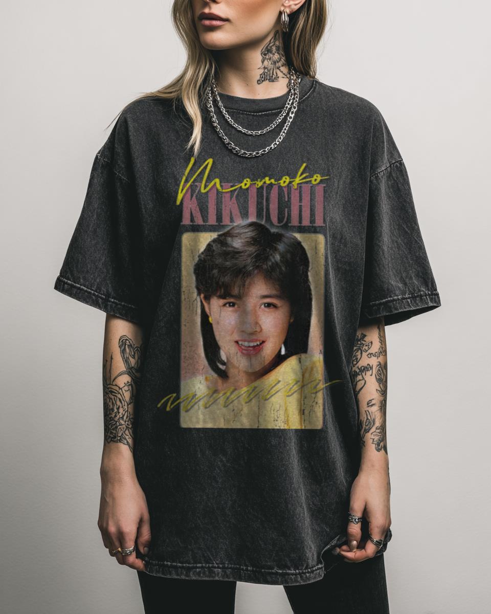 Are you captivated by the vibrant sounds and aesthetics of 80s City Pop? Step back in time with this ‘Momoko Kikuchi Retro 80s Fan Art’ graphic tee! This design celebrates the golden era of Japanese idols and the smooth grooves of City Pop, blending synthwave aesthetics with a nostalgic J-Pop vibe. Perfect for fans of…