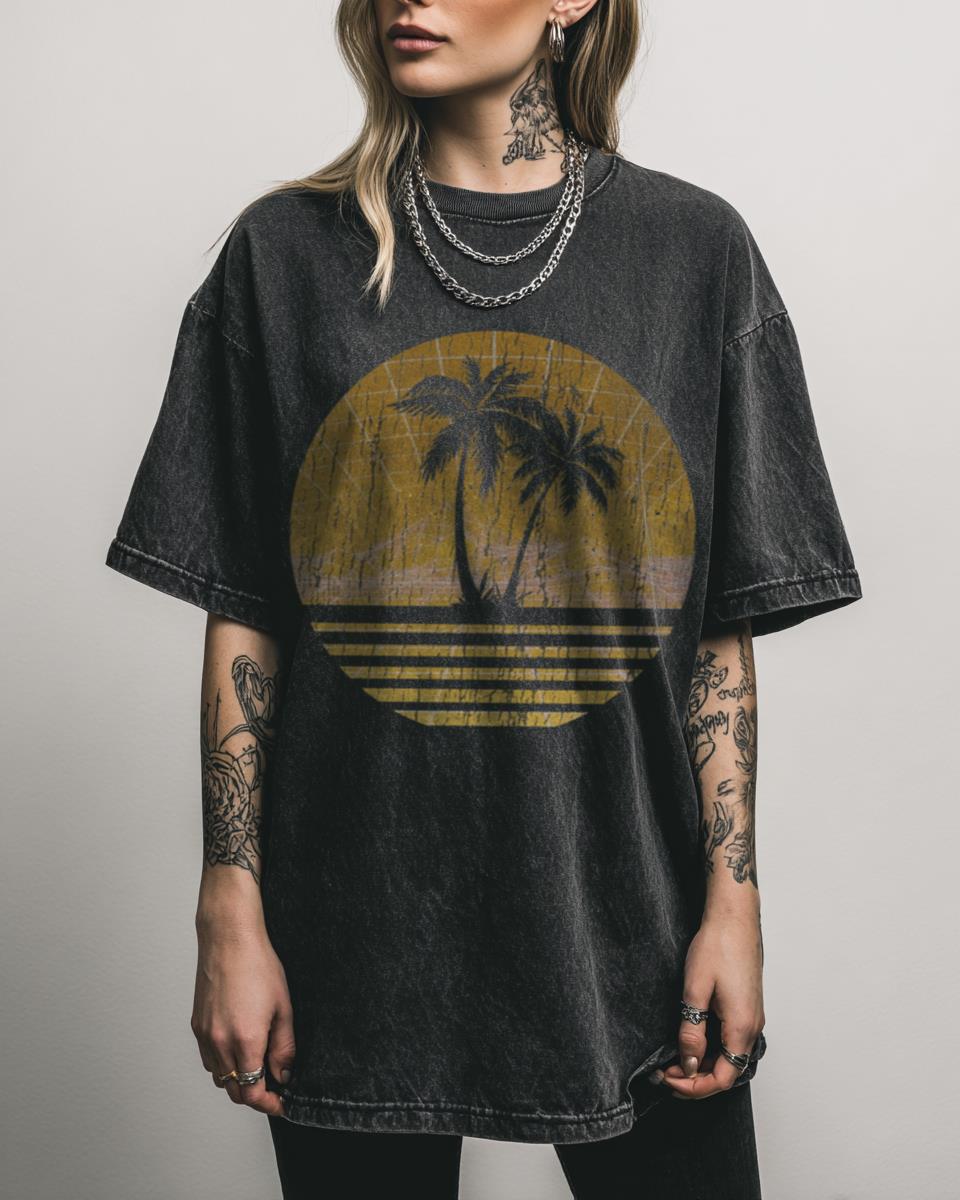 Drive into the Sunset with this 80s Outrun Synthwave T-Shirt! Embrace the neon glow of the past with this 80s Outrun Sunset Palm Tree T-shirt. Featuring a modern retro graphic on a unique black acidwash 100% cotton fabric, it’s perfect for fans of synthwave aesthetics and classic 80s vibes. Key Features of Your Retro Synthwave…