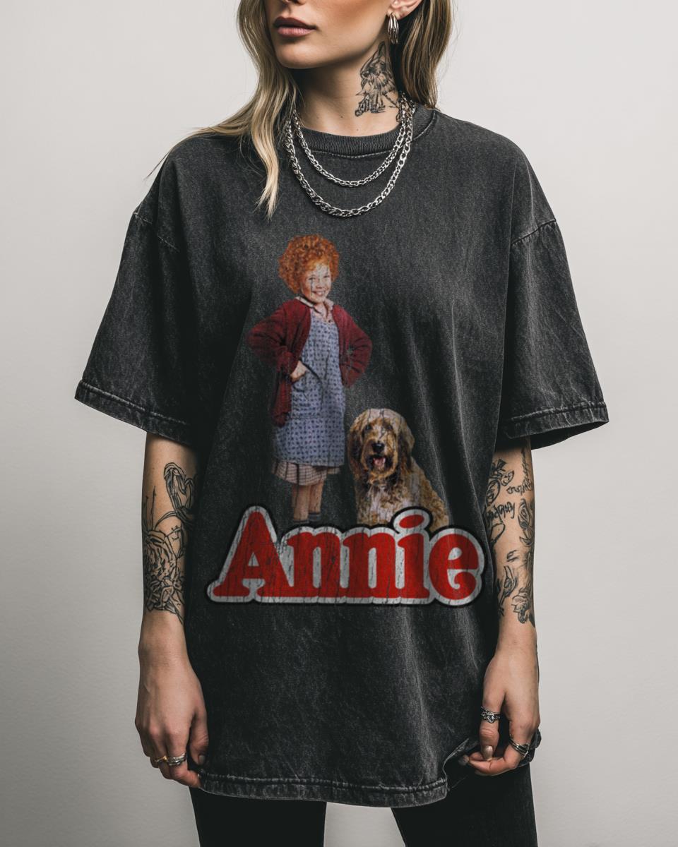 Why This Annie & Sandy T-Shirt is a Classic Musical Must-Have? Celebrate the timeless charm of the beloved musical with our Annie & Sandy T-Shirt, featuring a classic 80s movie graphic. This fan-created design on a stylish black acidwash tee is perfect for fans of the film and Broadway alike. Features of This Classic 80s…