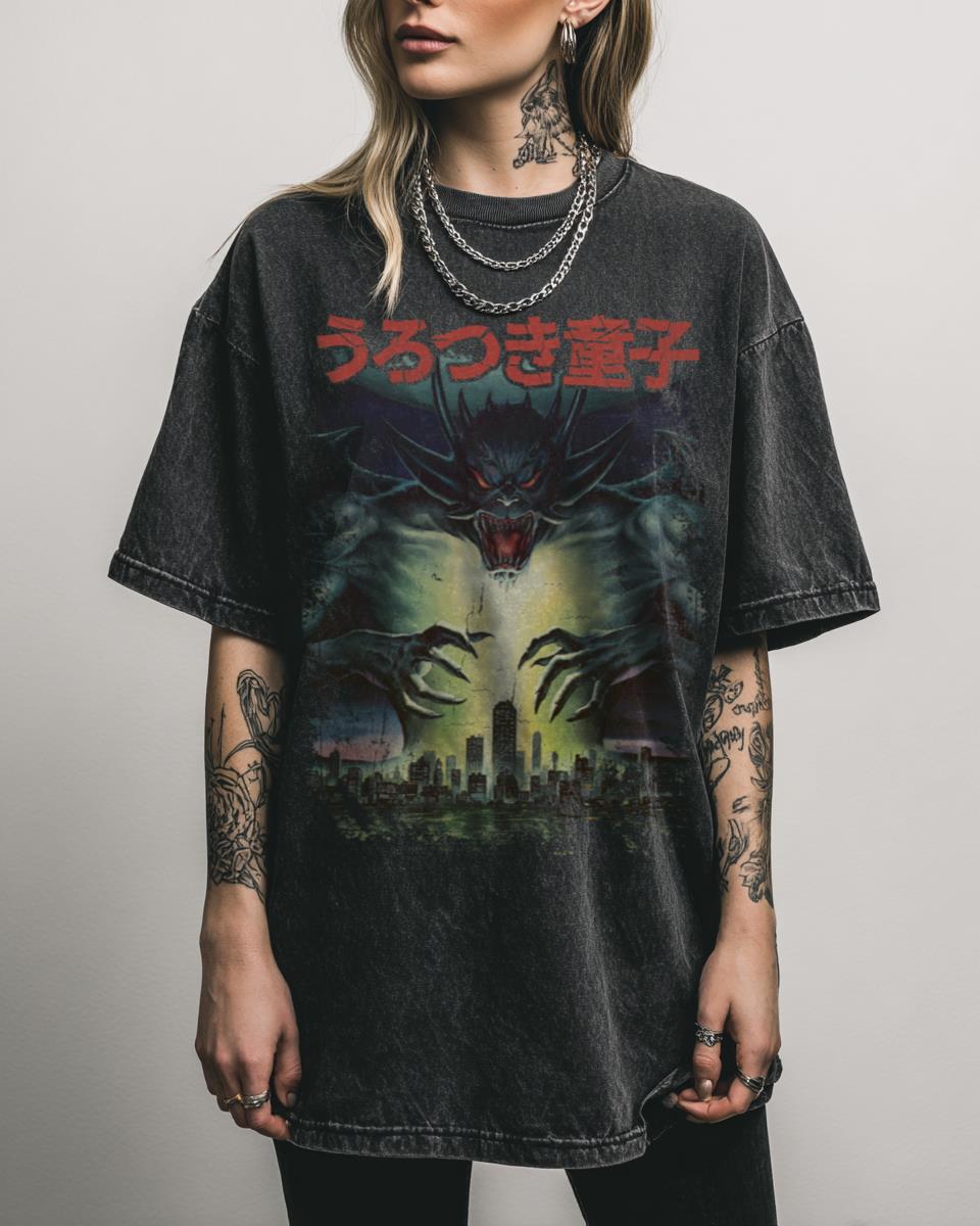 Seeking a Retro Anime Horror T-Shirt? Discover Urotsukidoji Fiend! Delve into the dark side of classic Japanese animation with this **Urotsukidoji Fiend T-Shirt**, featuring a vintage 1985-inspired graphic. This black acidwash tee, perfect for fans of retro anime horror and cult classics, showcases a powerful demon design that captures the essence of the Urotsukidoji universe….