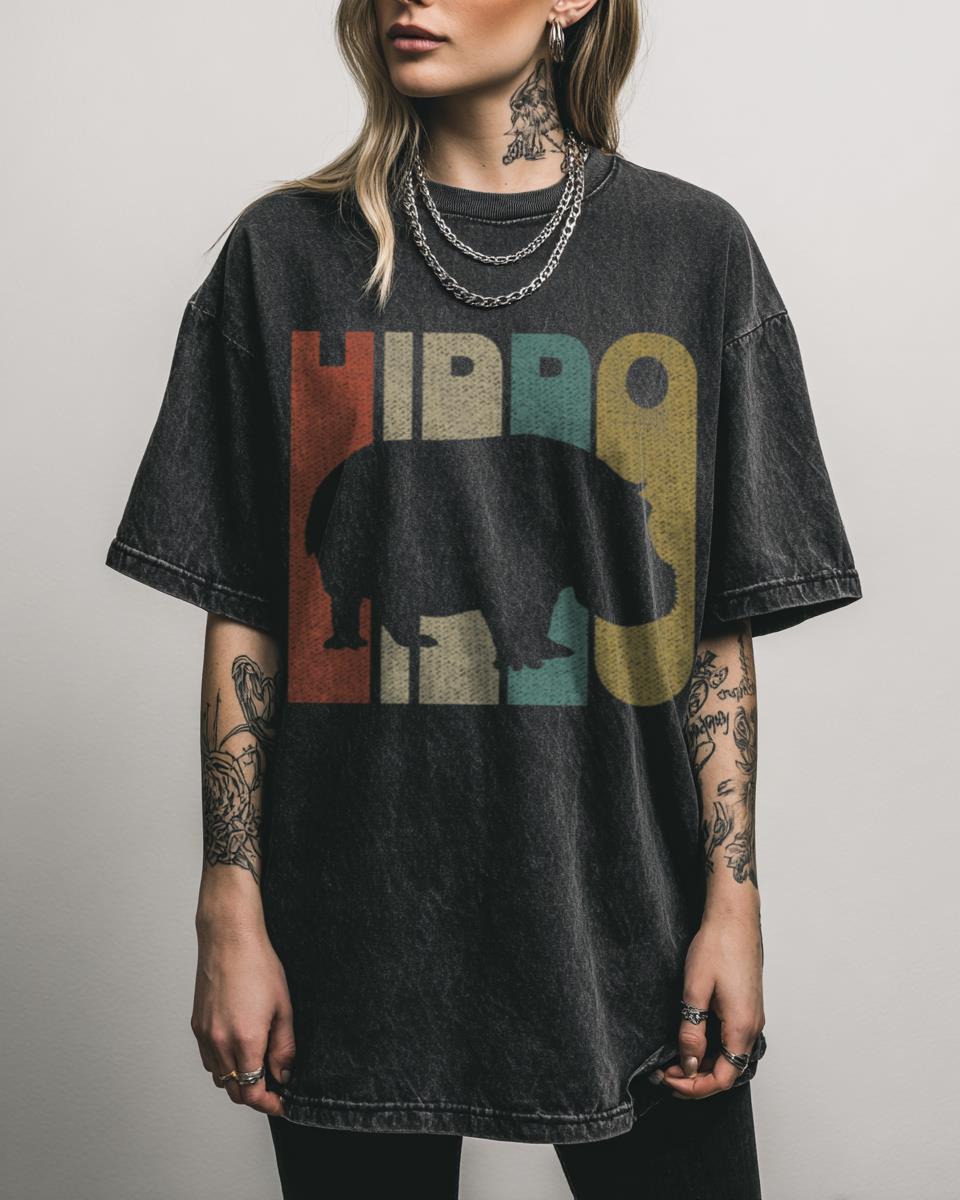 What Makes This Vintage Style Hippo Silhouette T-Shirt So Charming? Make a splash with this delightful Vintage Style Hippo Silhouette T-Shirt! Featuring a charming, retro-inspired graphic of a hippo silhouette, this tee combines a classic aesthetic with a touch of animal humor. The unique black acidwash fabric adds to its vintage appeal, perfect for animal…