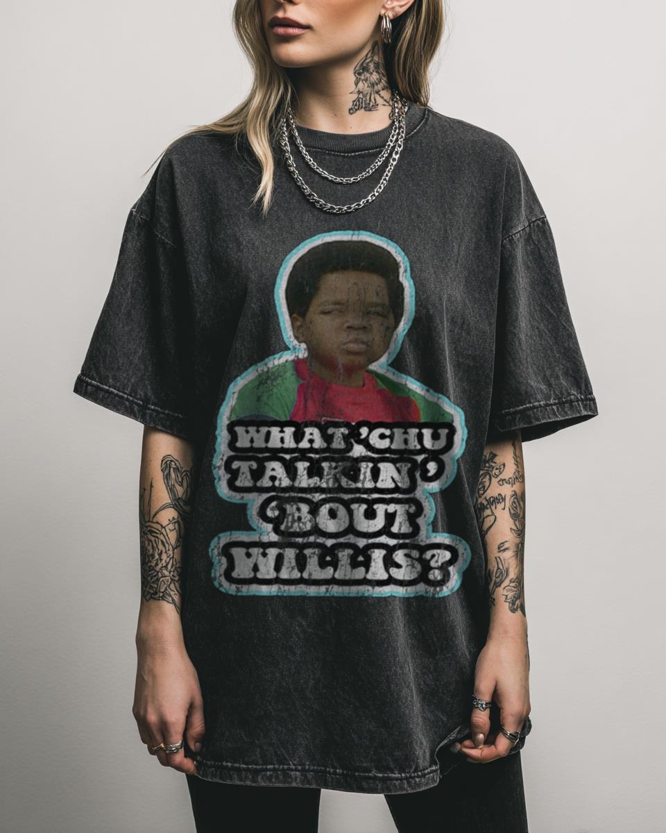 Remember Gary Coleman’s Iconic Catchphrase? Step back into classic 70s TV with this ‘What’chu talkin’ ’bout, Willis?’ Gary Coleman Retro TV Tee, a fan-created design inspired by the legendary Different Strokes show. Featuring the unforgettable quote on a black acidwash 100% cotton shirt, it’s perfect for fans of vintage television. Why This Retro TV Show…