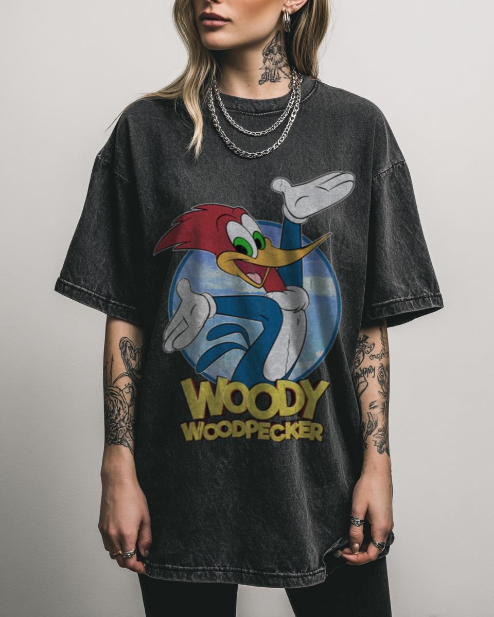 Why This Woody Woodpecker T-Shirt is a Classic Fan Favorite? Bring a dose of classic cartoon mischief to your wardrobe with this vibrant Woody Woodpecker T-Shirt. Featuring fan art of the iconic feathered friend, this black acidwash tee is perfect for those who grew up with the hilarious antics of Woody and appreciate vintage animation….