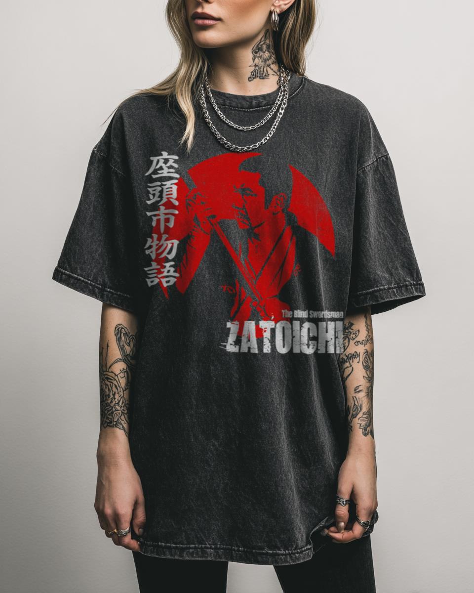 Do you appreciate the mastery of classic Japanese samurai cinema? Honor the legendary Shintaro Katsu as Zatoichi with this ‘The Blind Swordsman’ acidwash T-shirt, a tribute to the iconic Japanese movie series. This retro-inspired design captures the essence of the wandering samurai, perfect for fans of martial arts films and classic cinema. It’s a powerful…