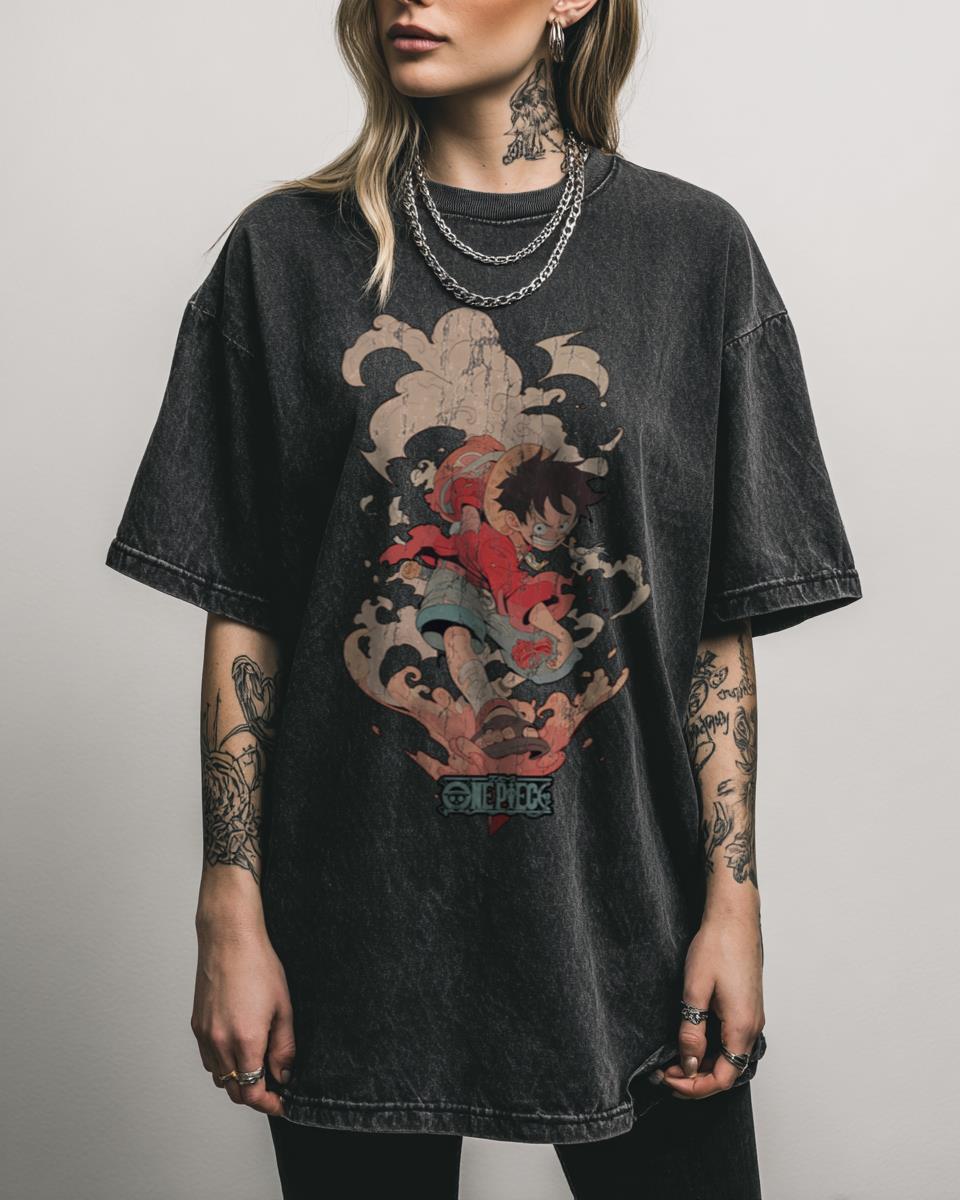 Unleash the power of Gear 5 with a unique anime streetwear twist! This ‘Nike’ inspired graphic tee brilliantly combines the iconic brand logo with the explosive power of Monkey D. Luffy’s Gear 5 ‘Nika’ form from One Piece. A custom design for manga and anime fans, it’s a stylish tribute to the Gum Gum fruit…