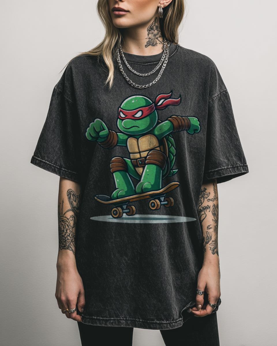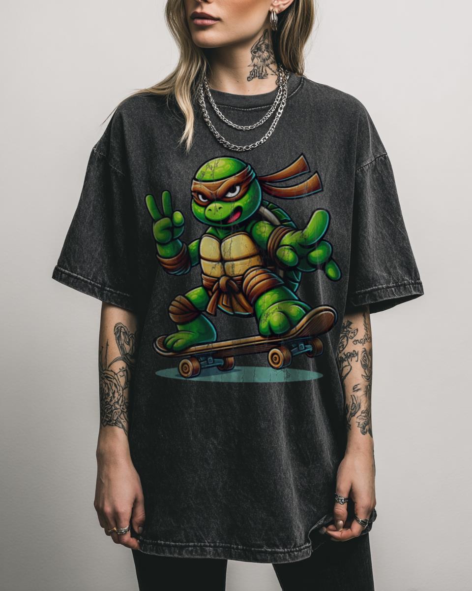 Looking for a fun and action-packed design for your little adventurer? Hit the streets with this cool ‘Ninja Turtle Riding Skateboard’ graphic tee! This playful cartoon design features a ninja turtle skillfully cruising on a skateboard, combining action and adorable animal charm. It’s perfect for kids and anyone who loves turtles, ninjas, and skateboarding fun….