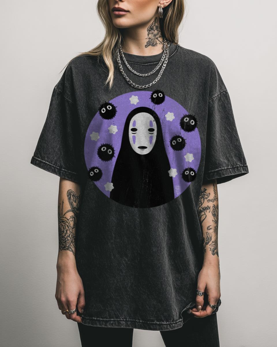Embrace the enigmatic charm of a Studio Ghibli icon! Step into the magical world of Spirited Away with this ‘NO FACE’ graphic tee. Featuring the mysterious No Face alongside whimsical Soot Sprites, this design captures the unique, purple-hued spirit of the beloved Studio Ghibli film. It’s a minimalist yet powerful tribute to a cinematic masterpiece….