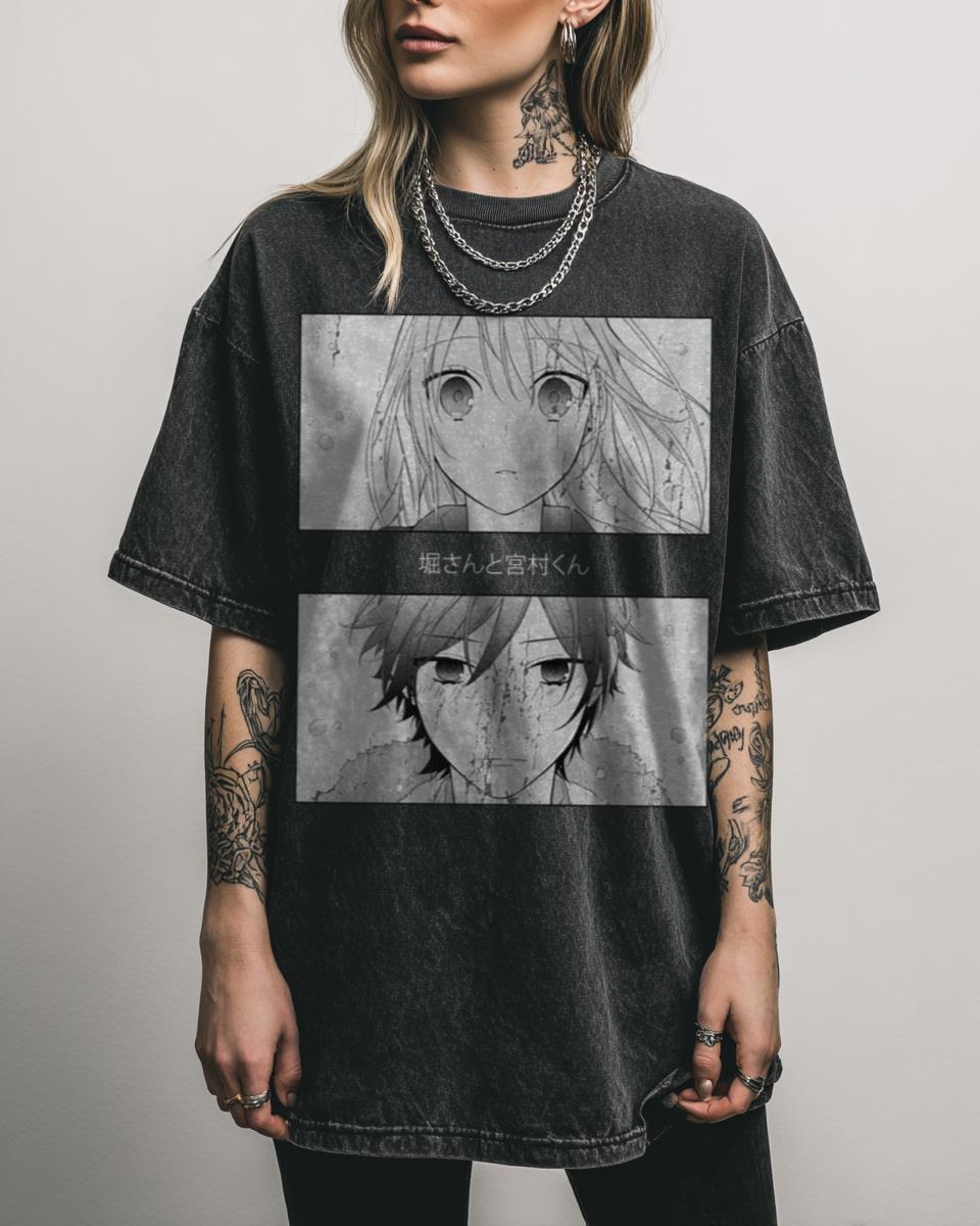 Searching for the perfect apparel to celebrate your favorite anime couple, Hori and Miyamura? Embrace the heartwarming romance of Horimiya with this trendy anime design featuring the beloved couple, Hori and Miyamura. This tee captures the cute and cool aesthetic of the popular series, making it an ideal choice for fans of romantic comedy manga…