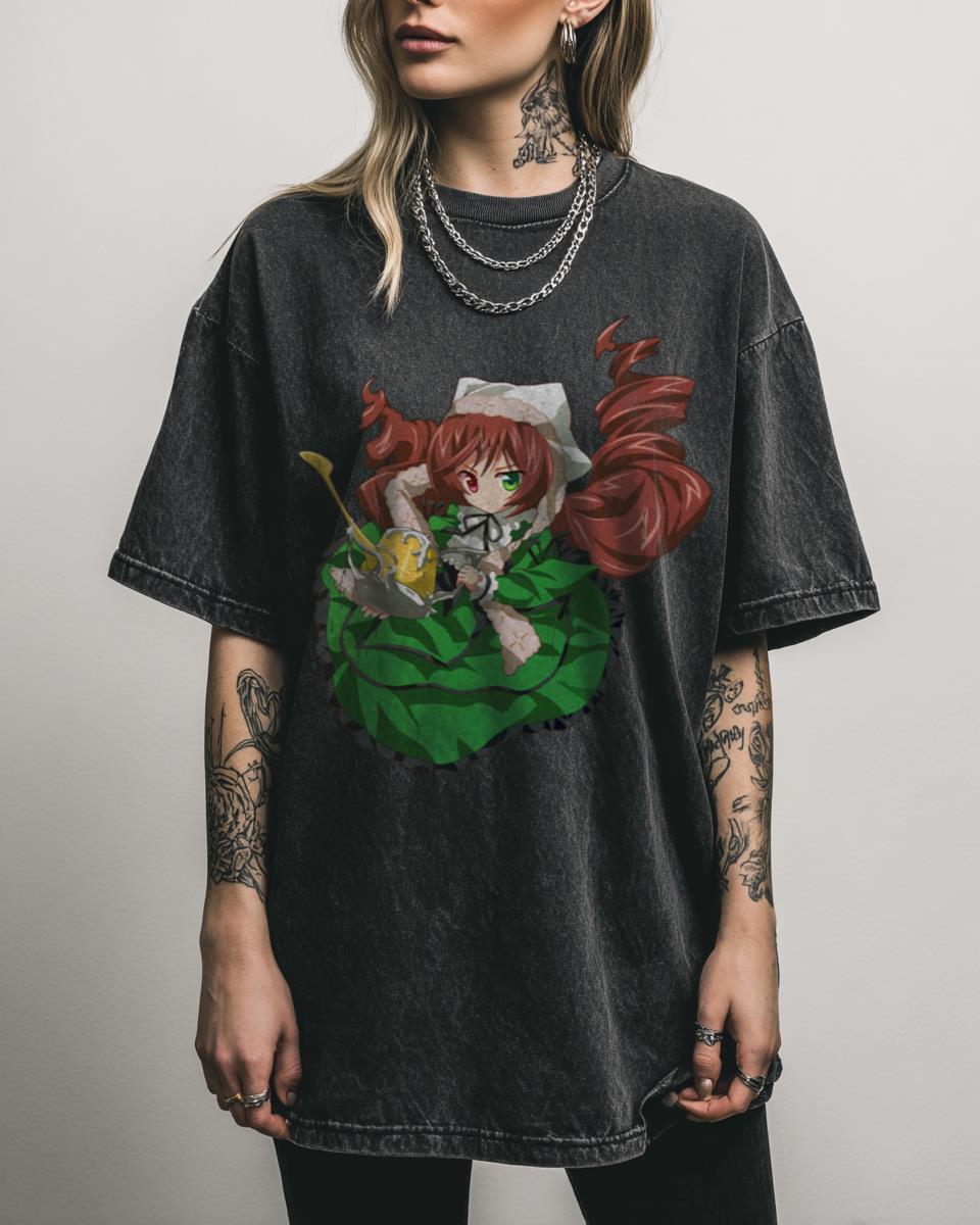 Do you cherish the gentle spirit and gardening charm of Suiseiseki from Rozen Maiden? Cultivate your style with this delightful Black Acidwash T-Shirt featuring ‘Chibi Suiseiseki.’ This kawaii design captures the cute, green-themed doll from Rozen Maiden, often associated with gardens and watercans, perfect for fans of the gothic lolita anime and manga series. Why…
