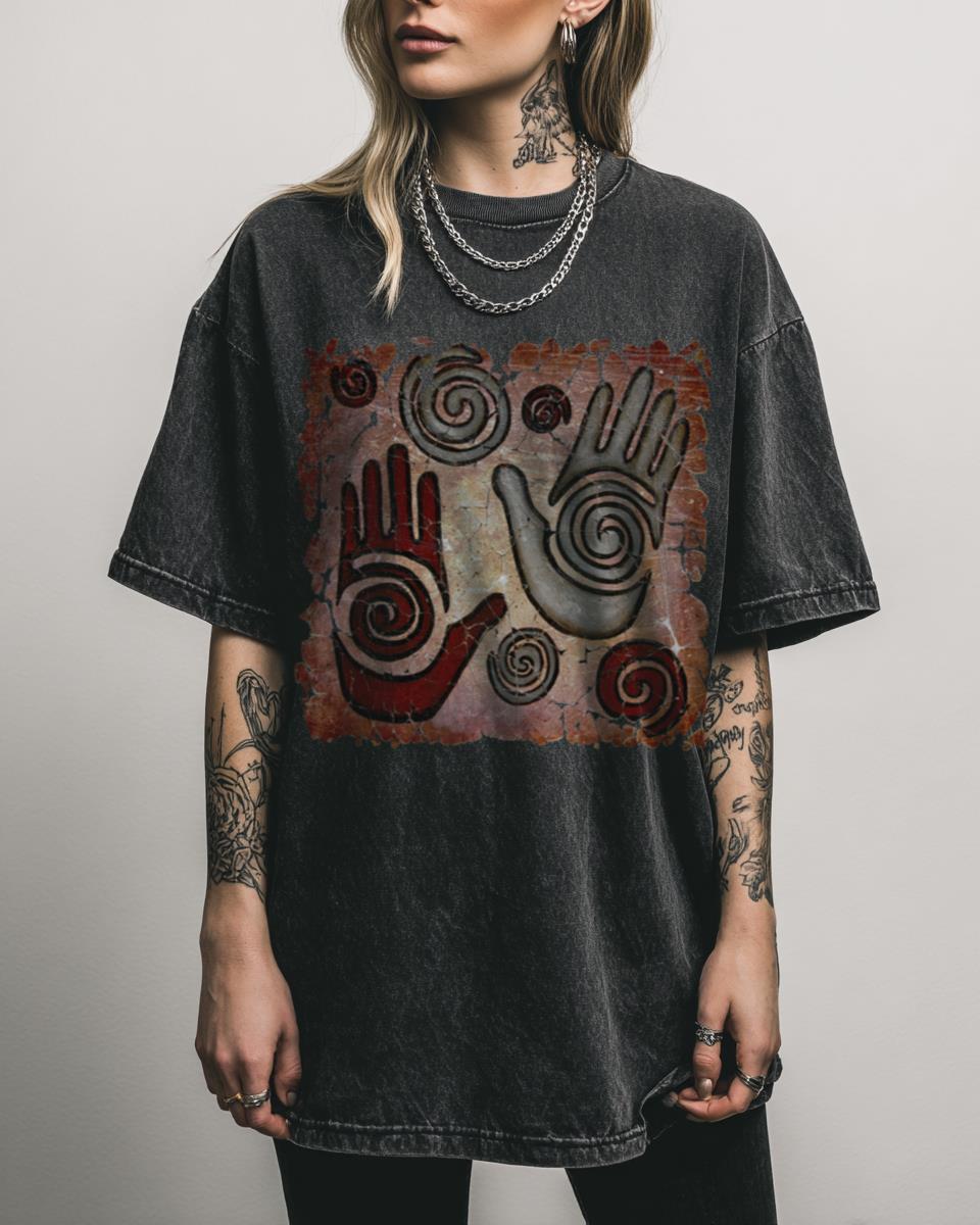 What Makes This Ancient Fresco Spirals T-Shirt a Unique Piece of Art? Adorn yourself with history and art with this Ancient Fresco Spirals T-shirt, featuring a rustic vintage style graphic inspired by ancient hand-painted murals. This unique design, complete with a crackle effect on a black acidwash tee, is perfect for art lovers and history…