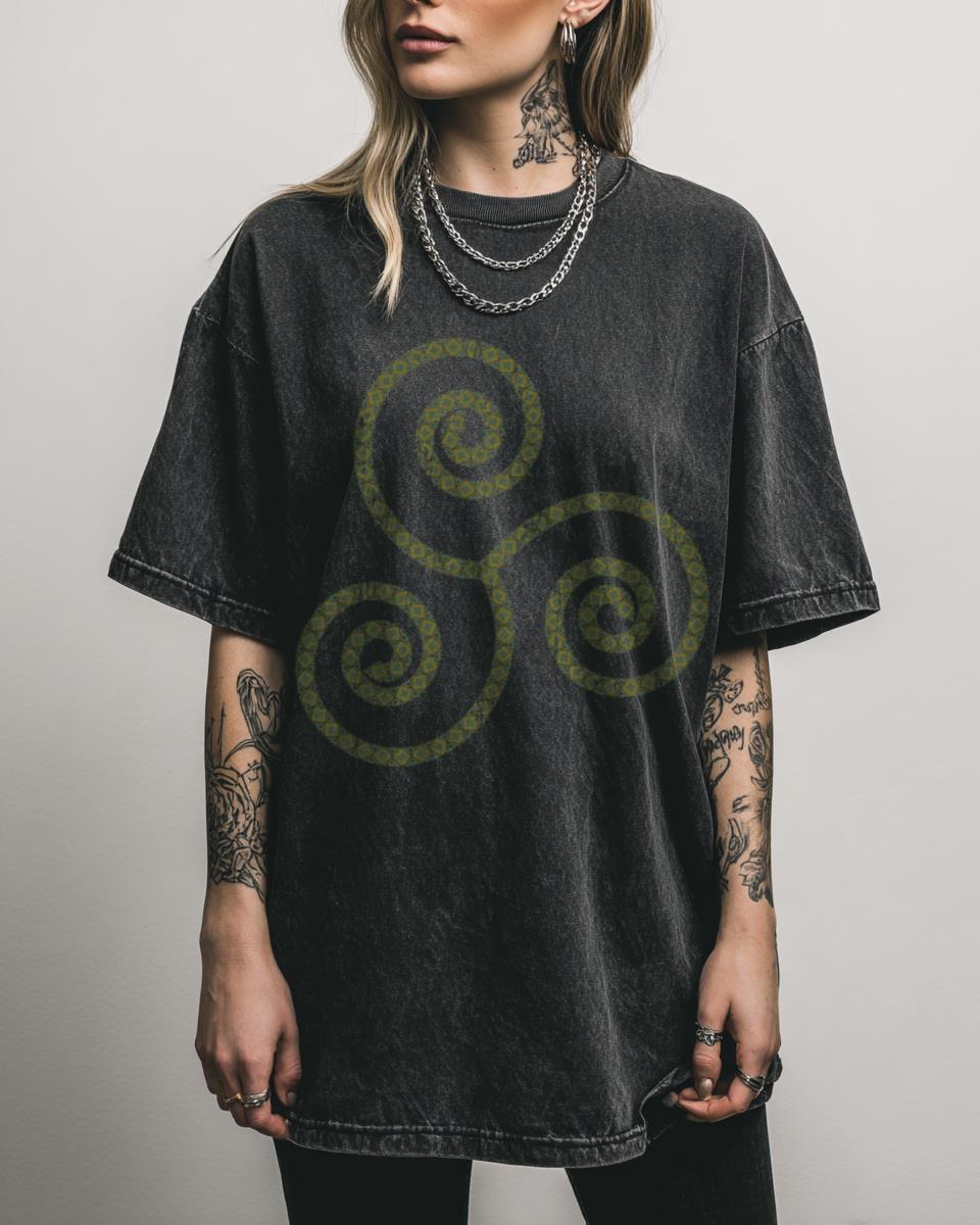 What is the Meaning of This Celtic Triskele Triple Spiral T-Shirt? Connect with the ancient wisdom of the Celts with this timeless Celtic Triskele Triple Spiral T-shirt. Featuring the iconic Triskele symbol, this acidwash graphic tee is a powerful representation of movement, progress, and the interconnectedness found in nature and spiritual paths, perfect for those…