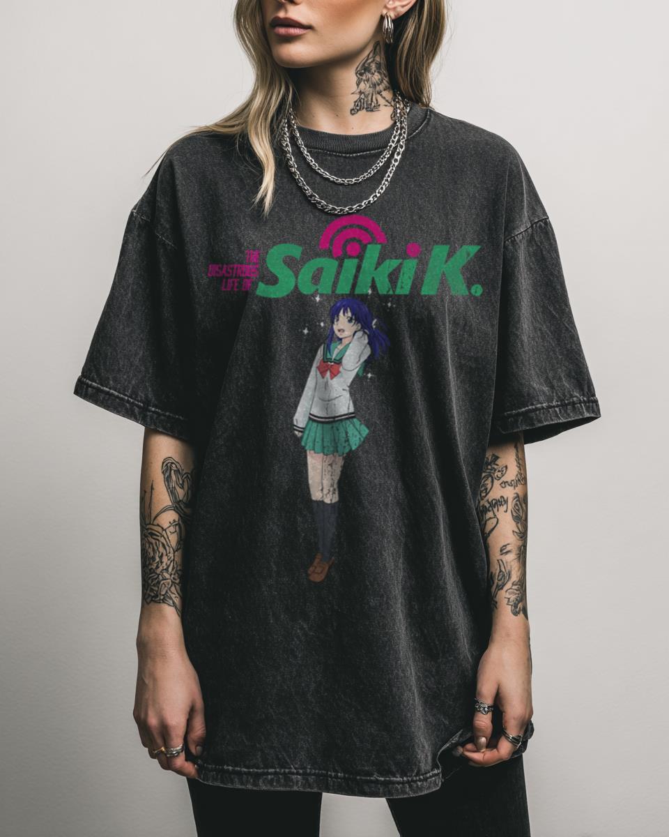 Embrace the Chaos with The Disastrous Life of Saiki K T-Shirt? Show your love for the psychic protagonist with The Disastrous Life of Saiki K T-Shirt. Featuring a vibrant graphic inspired by the hilarious anime and manga series, this black acidwash tee is a must-have for fans of Saiki K’s everyday struggles. Why This Saiki…